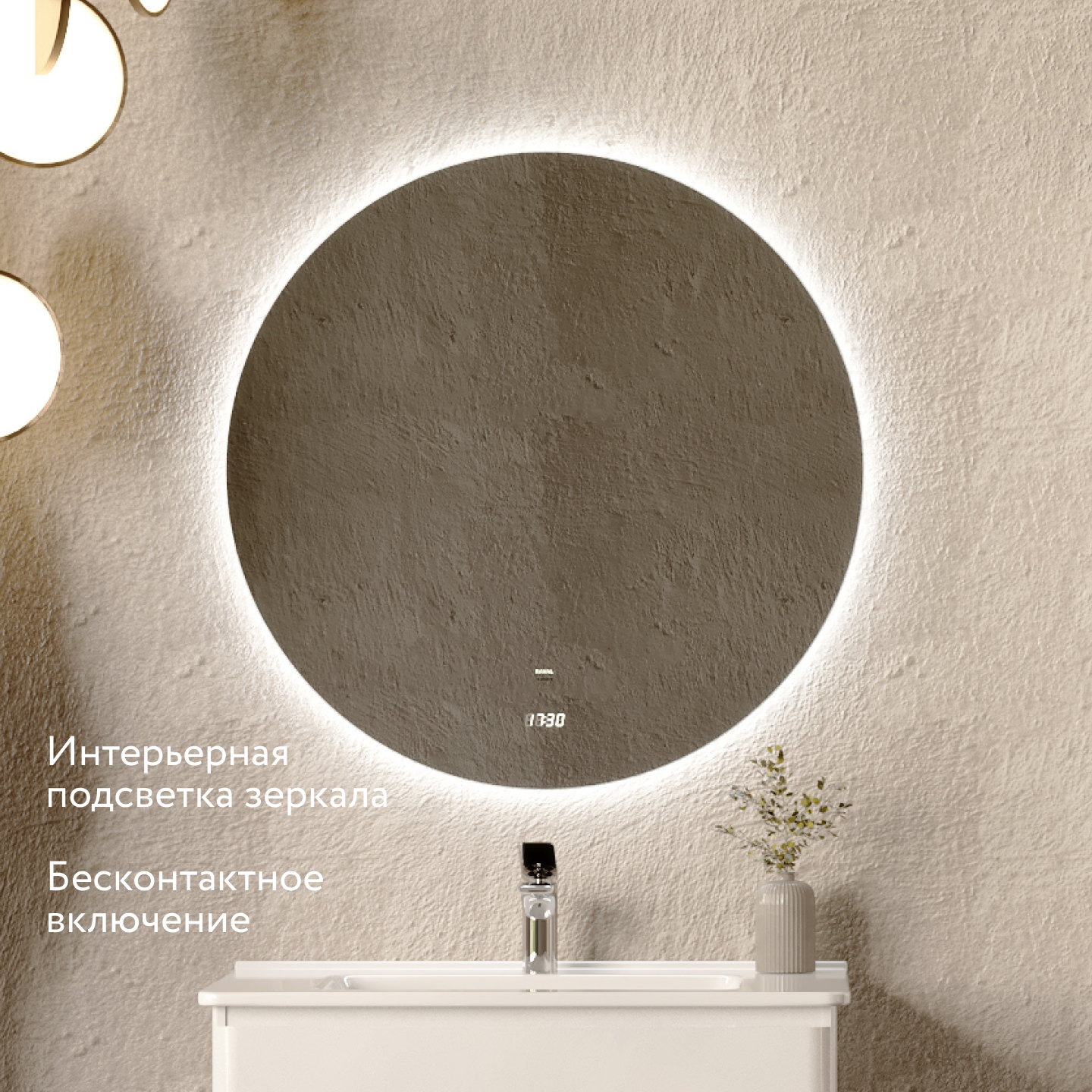 Зеркало оснащено функцией бесконтактного включения подсветки.