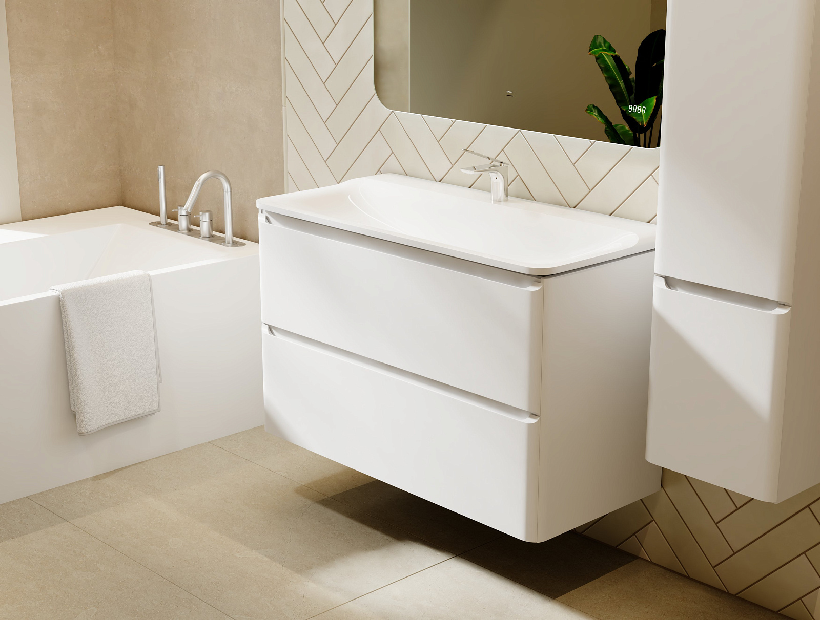 Коллекция Welto с 2 ящиками разработана в сдержанном, современном стиле. Встроенный органайзер помогает удобно разместить все мелкие предметы и поддерживать порядок в ванной комнате. Плавное скругление углов и интегрированные ручки делают комплект мебели максимально безопасным. Полноразмерная вкладная раковина авторского дизайна с пологими бортами проста в уходе. Корпуса и фасады пенала и тумбы изготовлены из МДФ и покрыты глянцевой пленкой ПВХ.