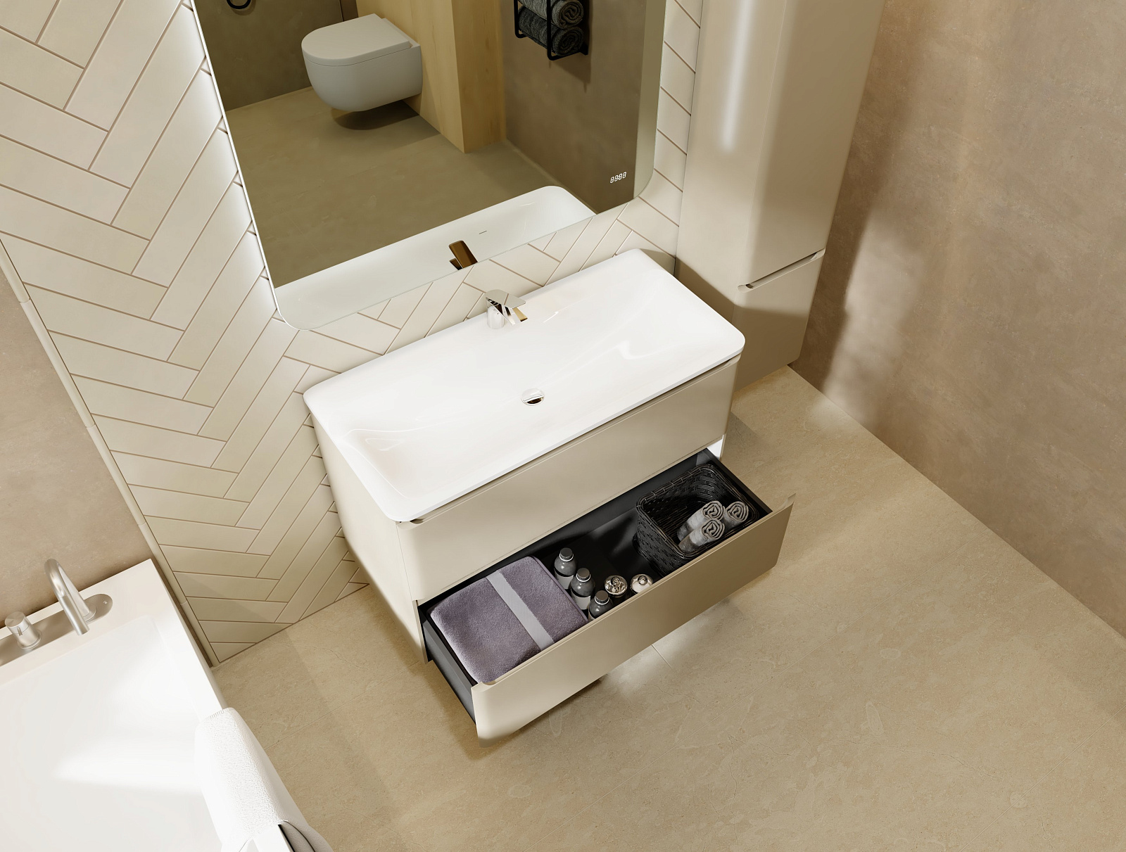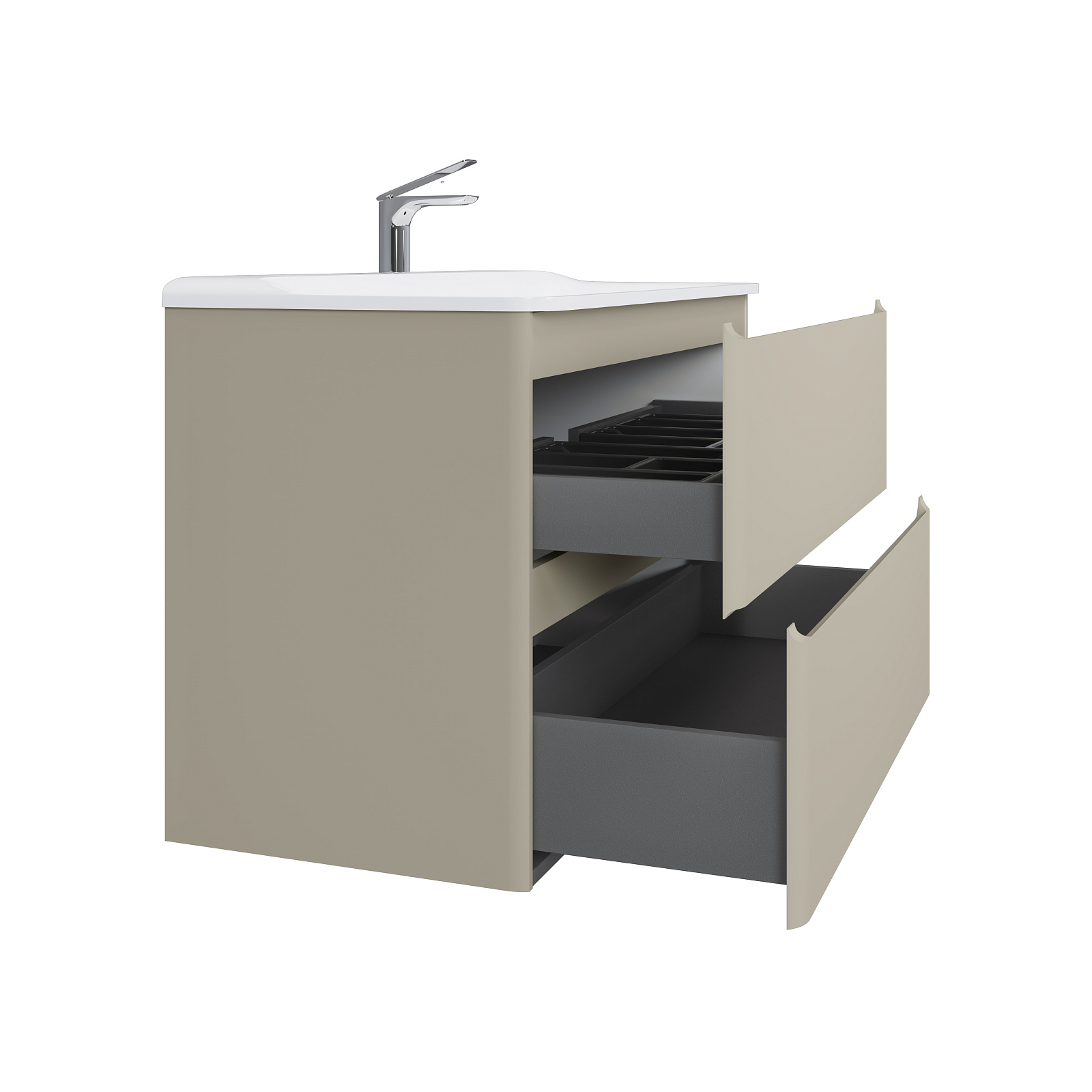 Коллекция Welto с 2 ящиками разработана в сдержанном, современном стиле. Встроенный органайзер помогает удобно разместить все мелкие предметы и поддерживать порядок в ванной комнате. Плавное скругление углов и интегрированные ручки делают комплект мебели максимально безопасным. Полноразмерная вкладная раковина авторского дизайна с пологими бортами проста в уходе. Корпуса и фасады пенала и тумбы изготовлены из МДФ и покрыты глянцевой пленкой ПВХ.