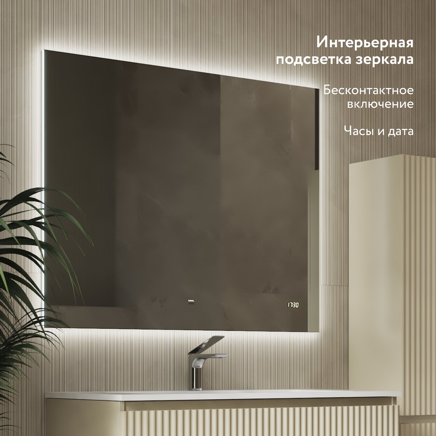 - Зеркало с интерьерной подсветкой, бесконтактное включение