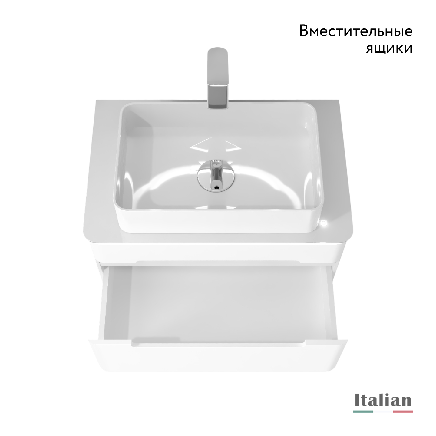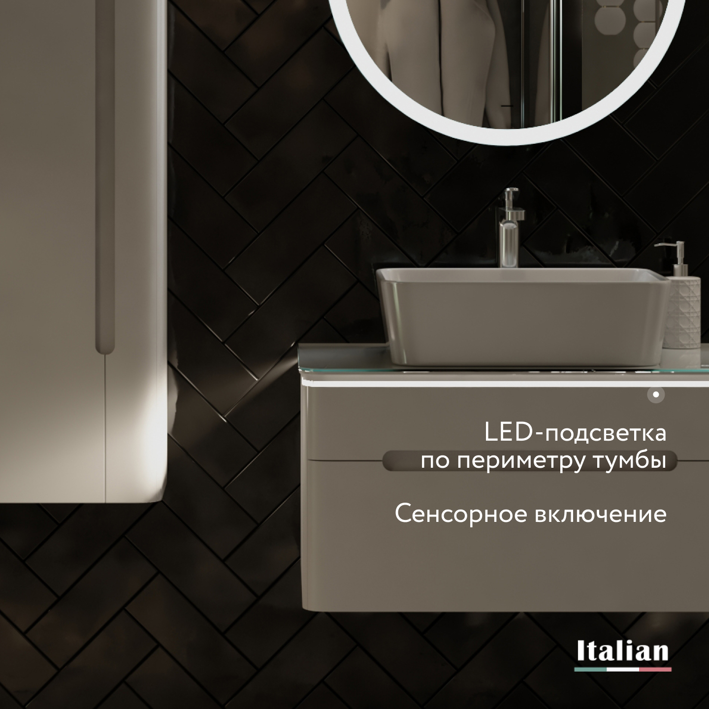 Само название коллекции говорит о том, что одним из основных достоинств данного комплекта является подсветка. Свет столешницы тумбы можно регулировать от деликатного мягкого до более яркого.