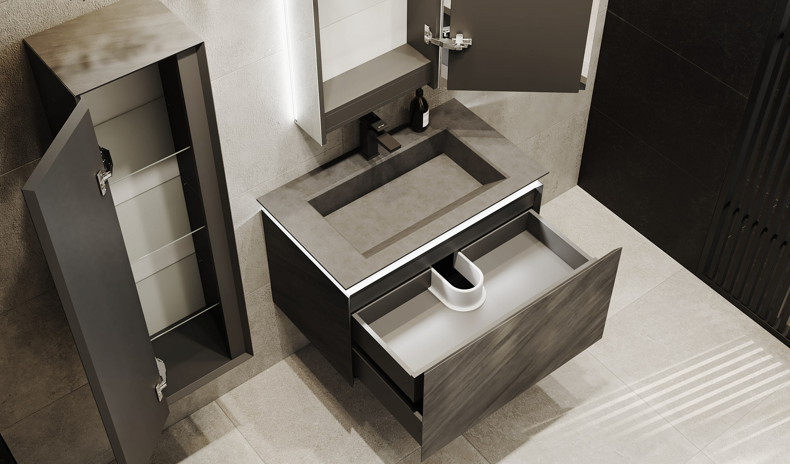 Пенал Инклайн 120 подвесной, бетон |