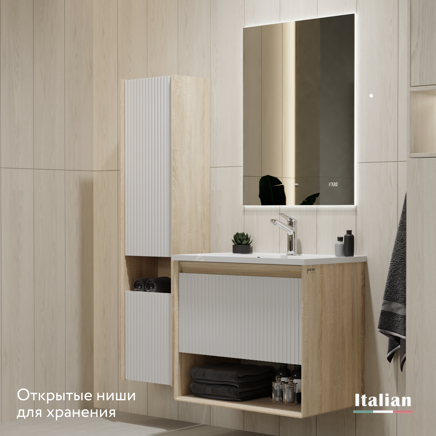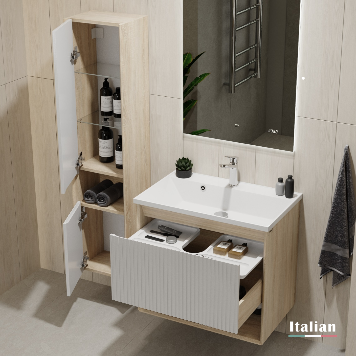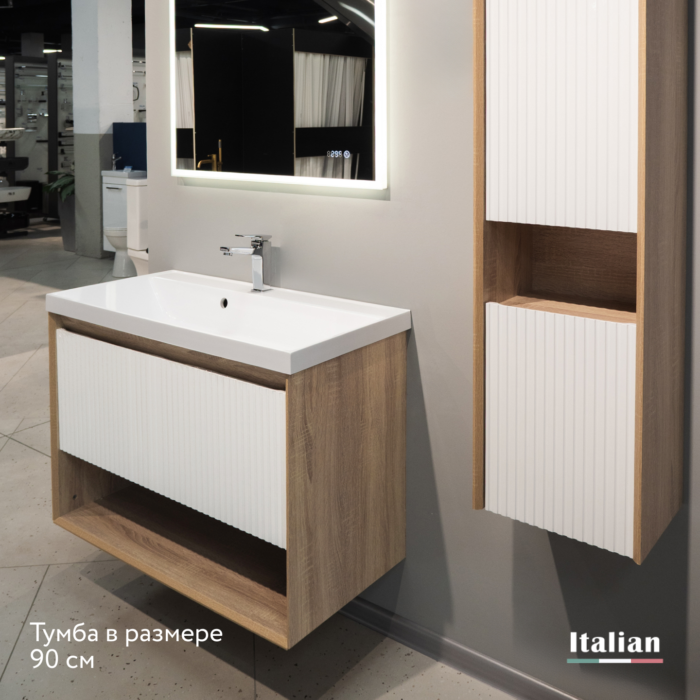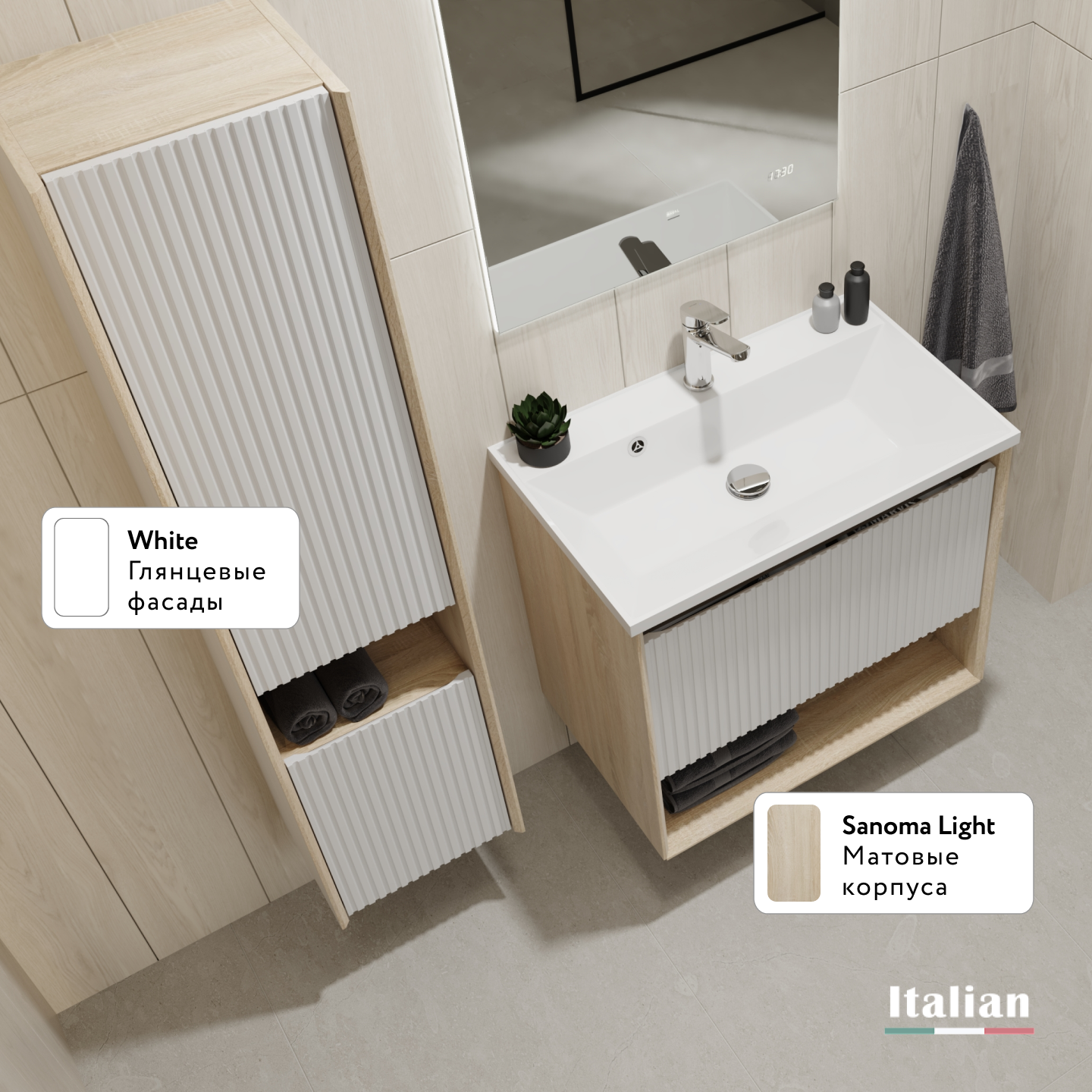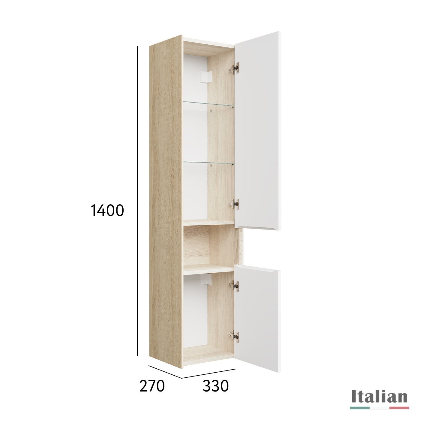 Пенал Тоссони 140 подвесной Сонома светлая/Белый |