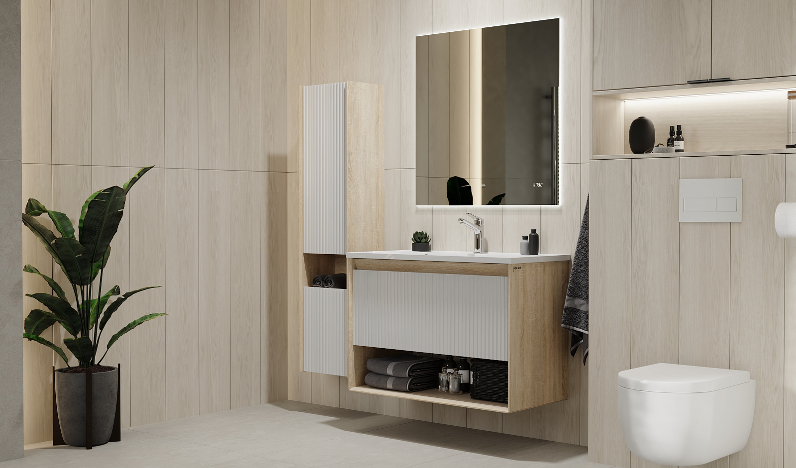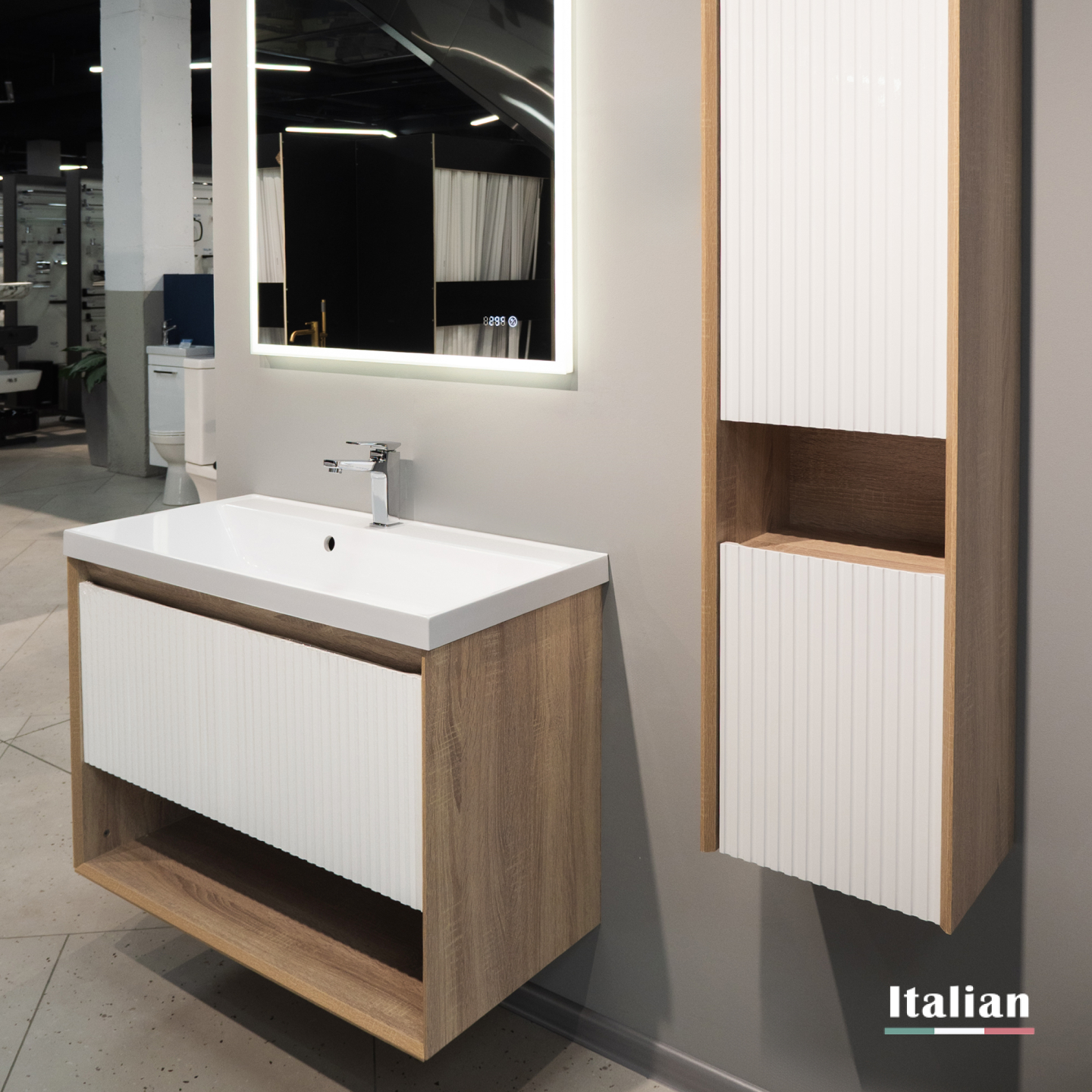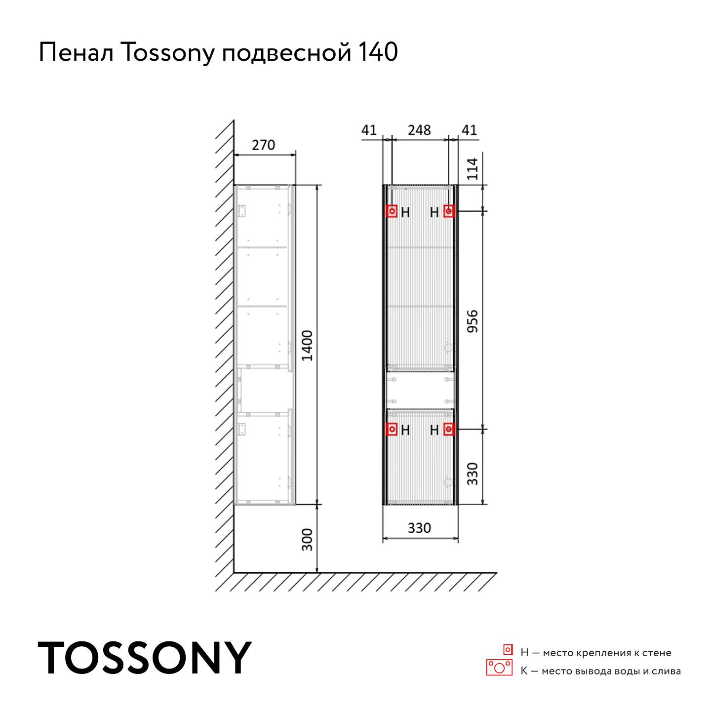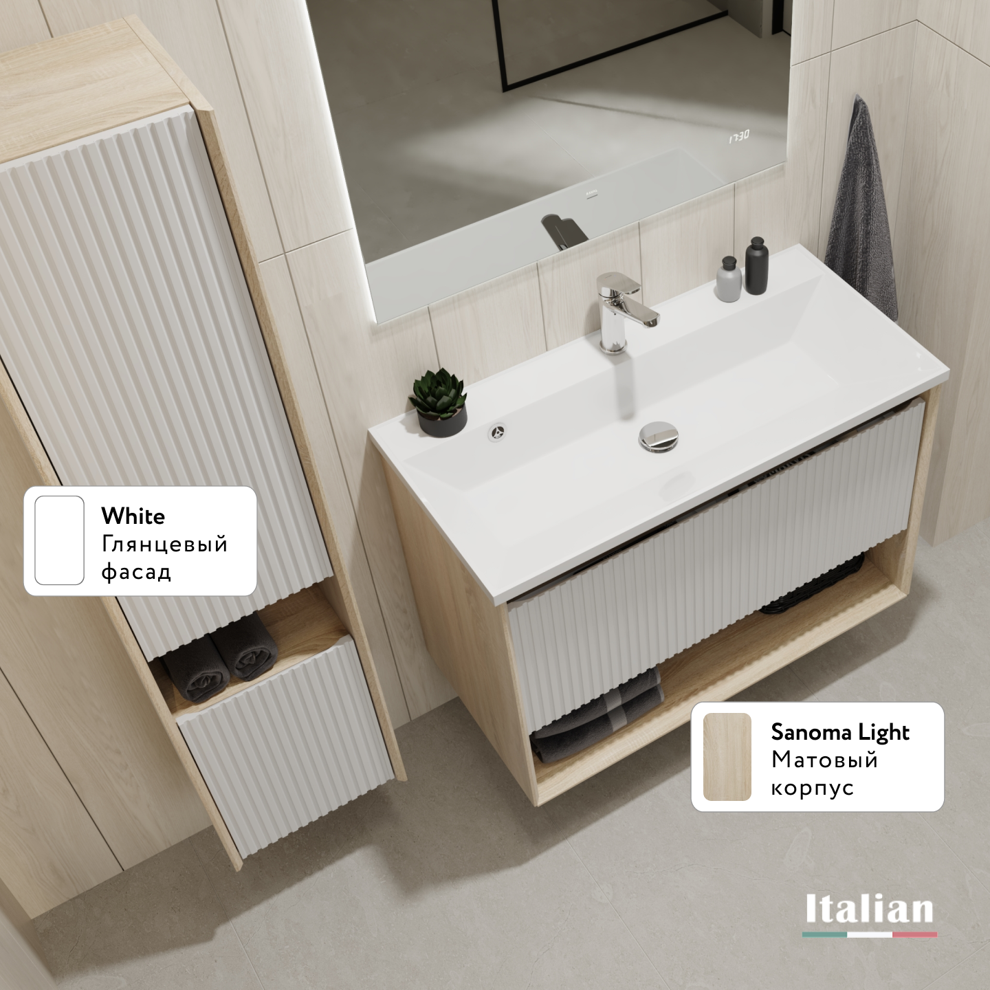 Пенал Тоссони 140 подвесной Сонома светлая/Белый |