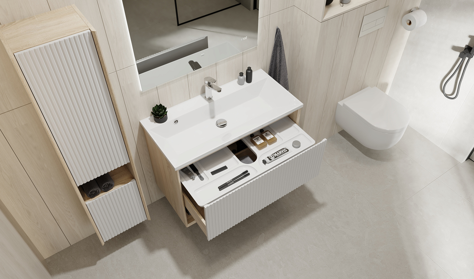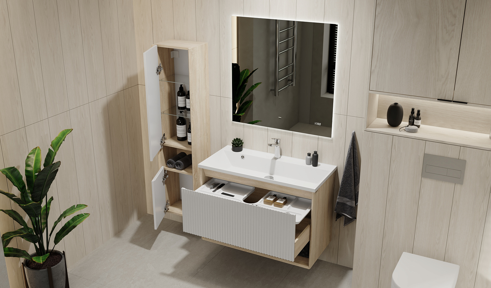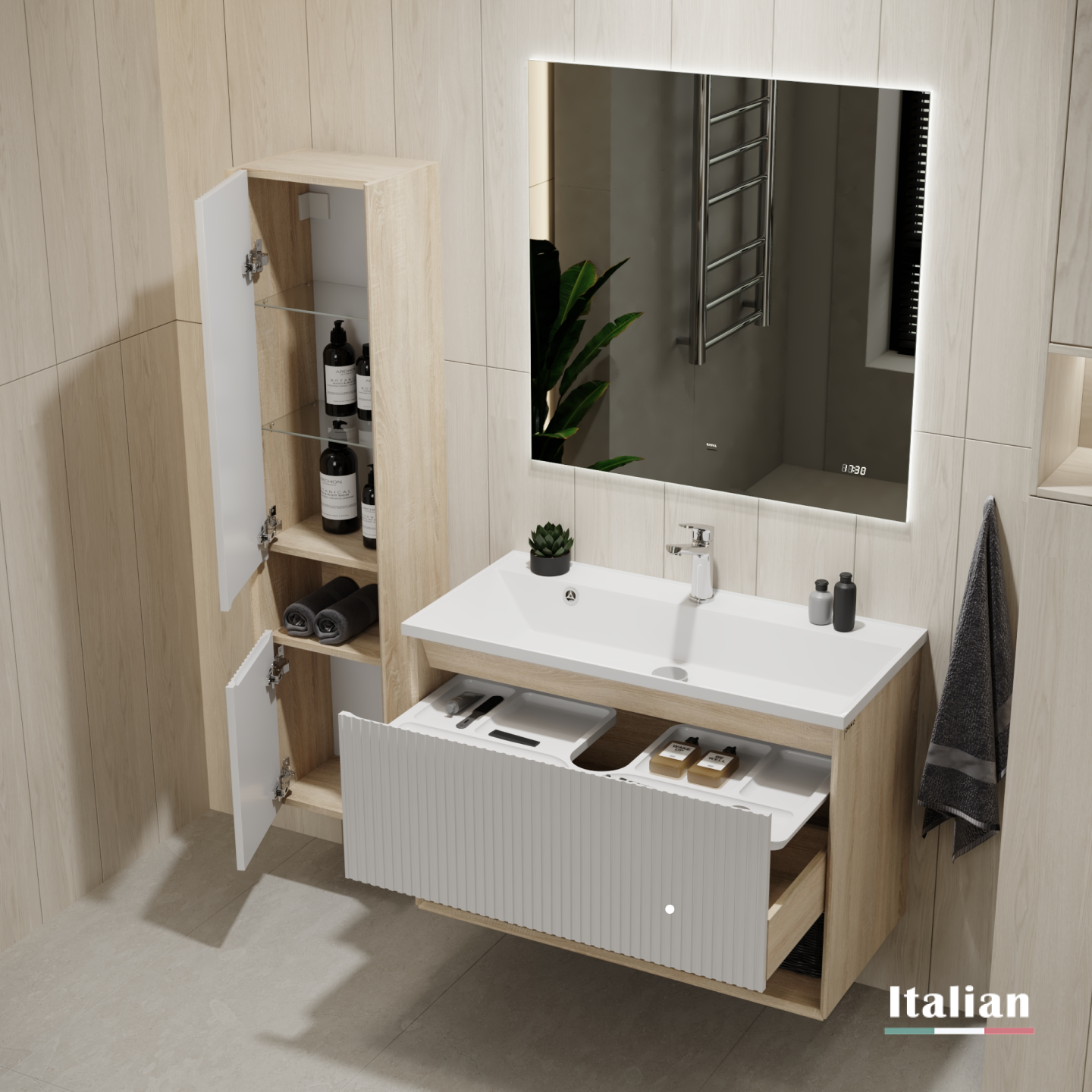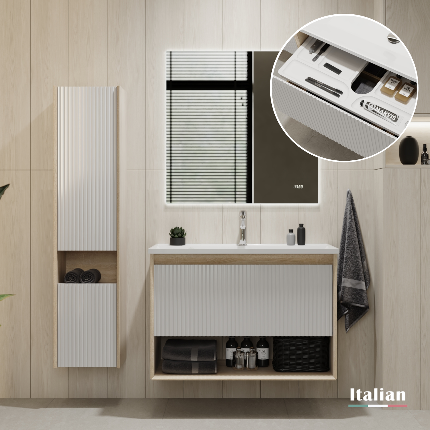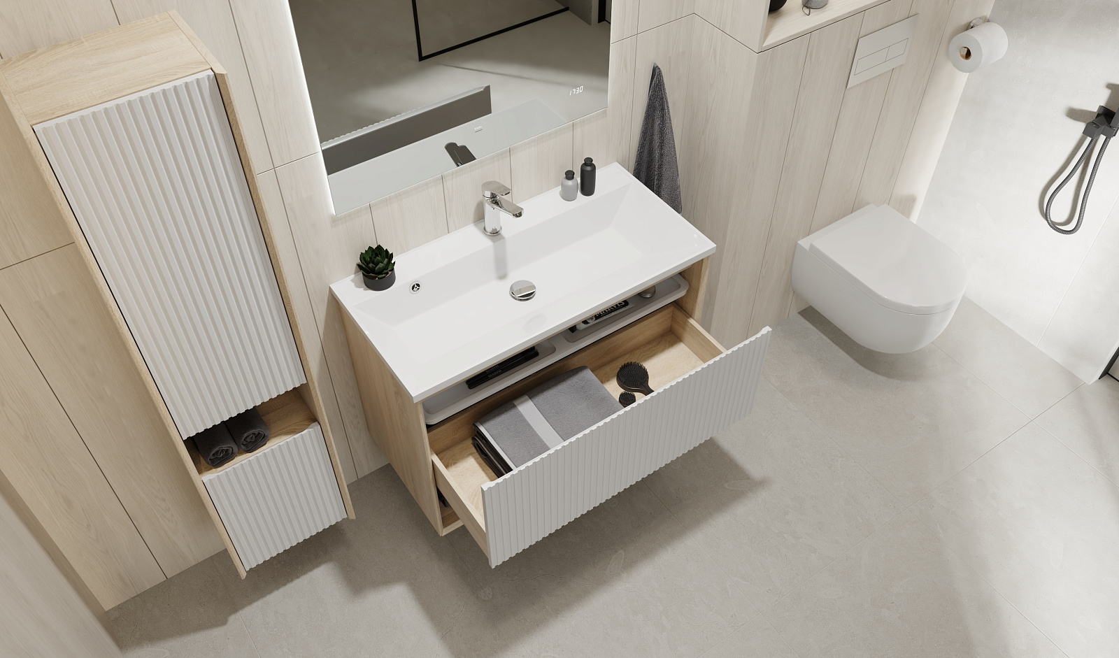 Пенал Тоссони 140 подвесной Сонома светлая/Белый |