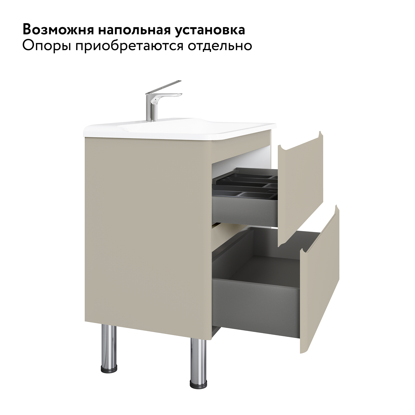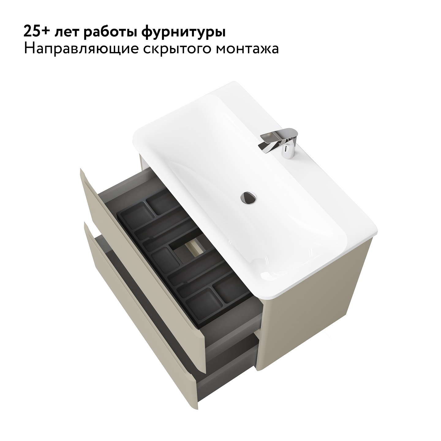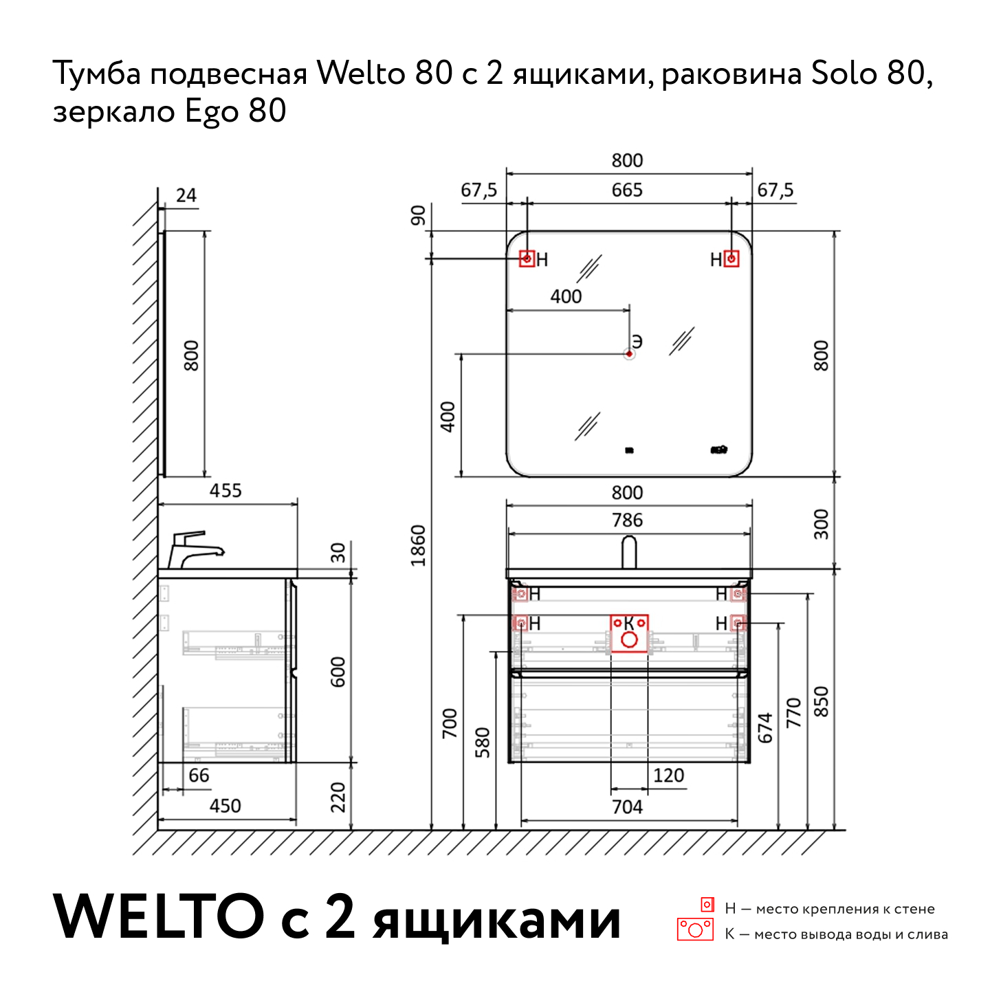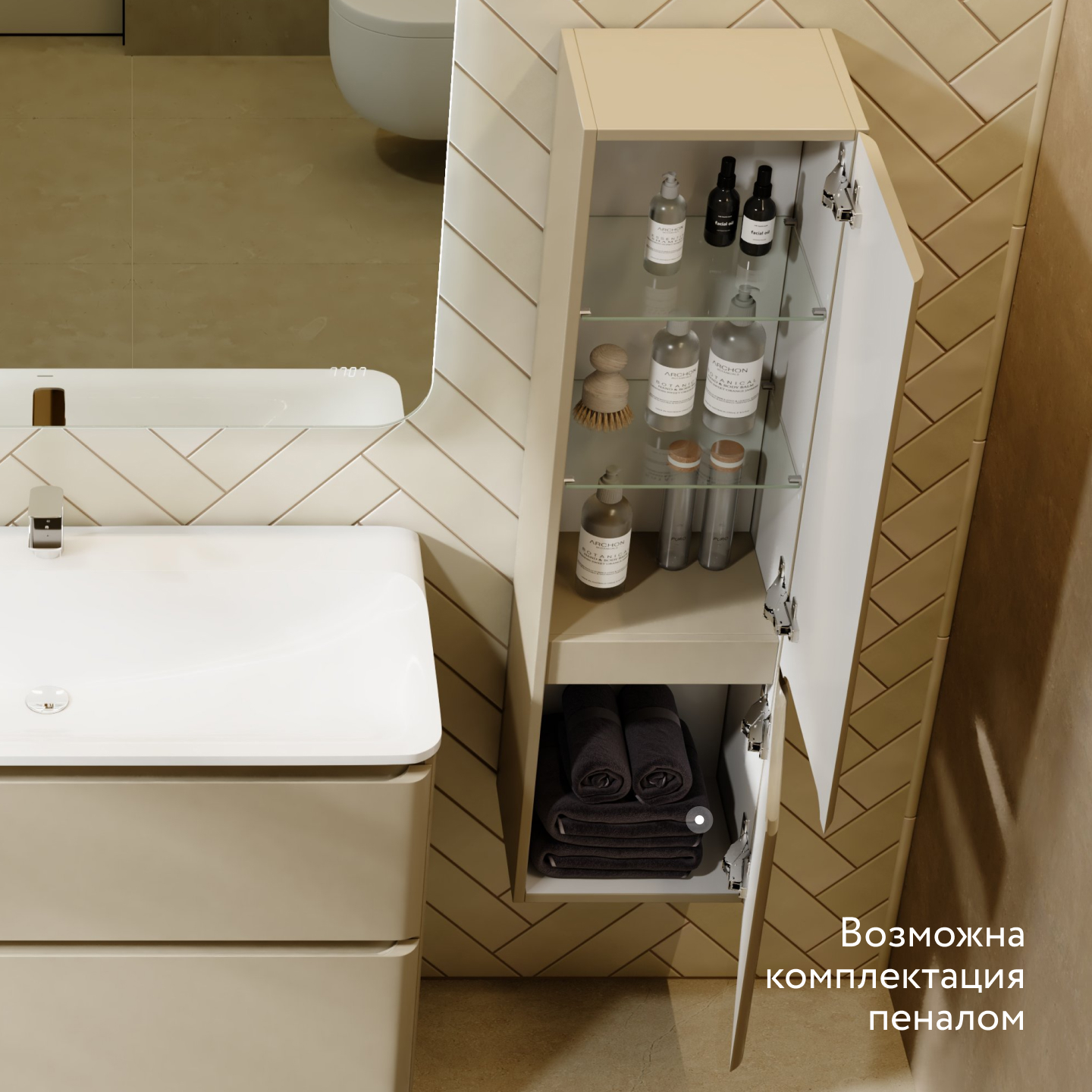 Коллекция Welto разработана в сдержанном, современном стиле. Компактный выдвижной ящик освобождает пространство под тумбой для дополнительного использования. Встроенный органайзер помогает удобно разместить все мелкие предметы и поддерживать порядок в ванной комнате. Плавное скругление углов и интегрированные ручки делают комплект мебели максимально безопасным. Полноразмерная вкладная раковина авторского дизайна с пологими бортами проста в уходе. Корпуса и фасады пенала и тумбы изготовлены из МДФ и покрыты глянцевой пленкой ПВХ.