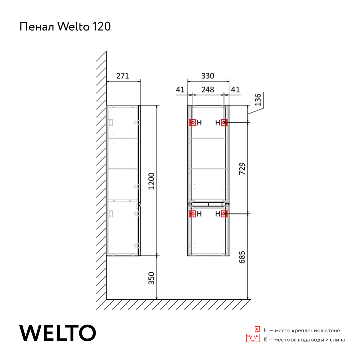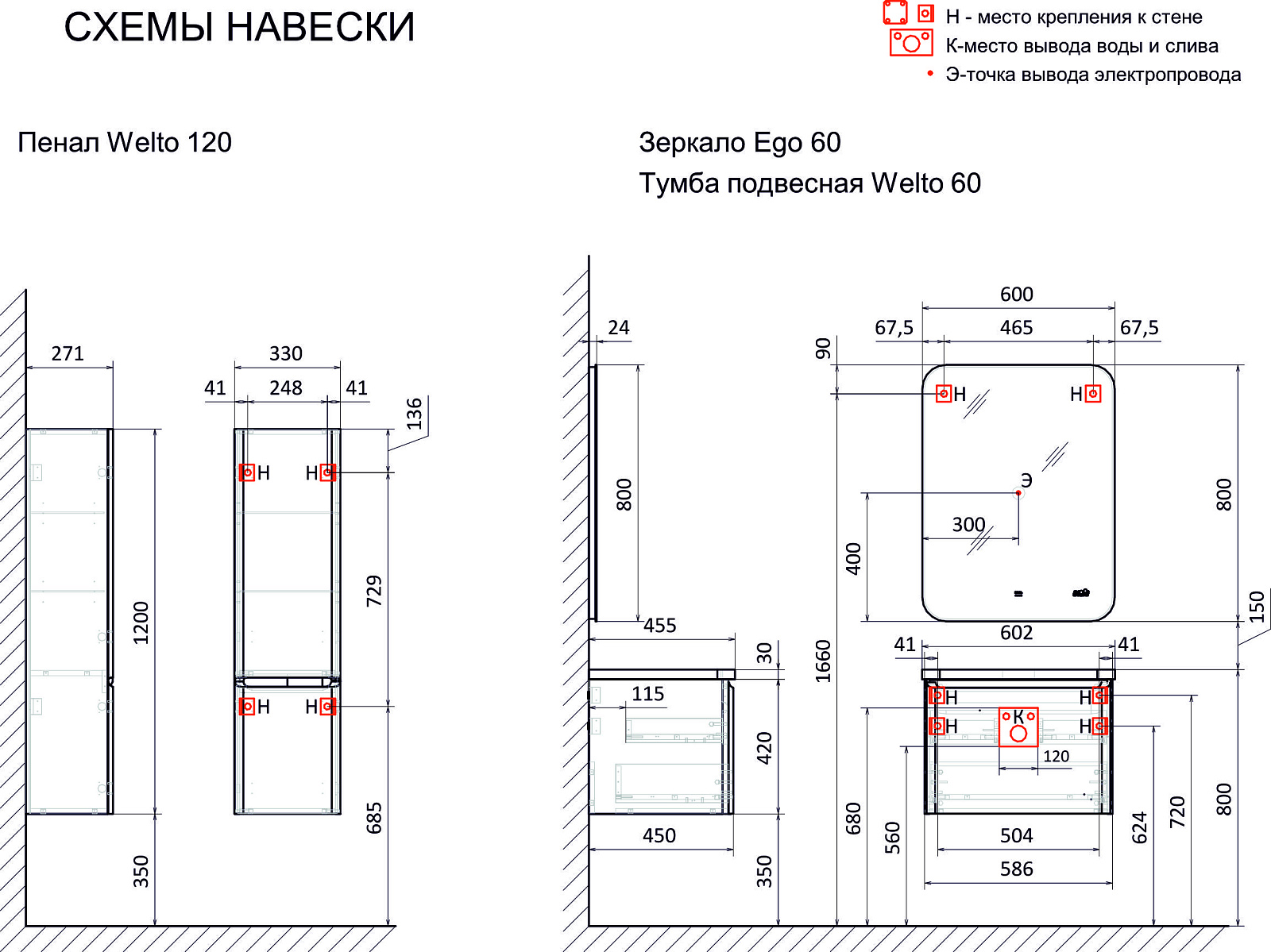 Тумба Вельто 60 с 2 ящ. подвесная светло-коричневая |
