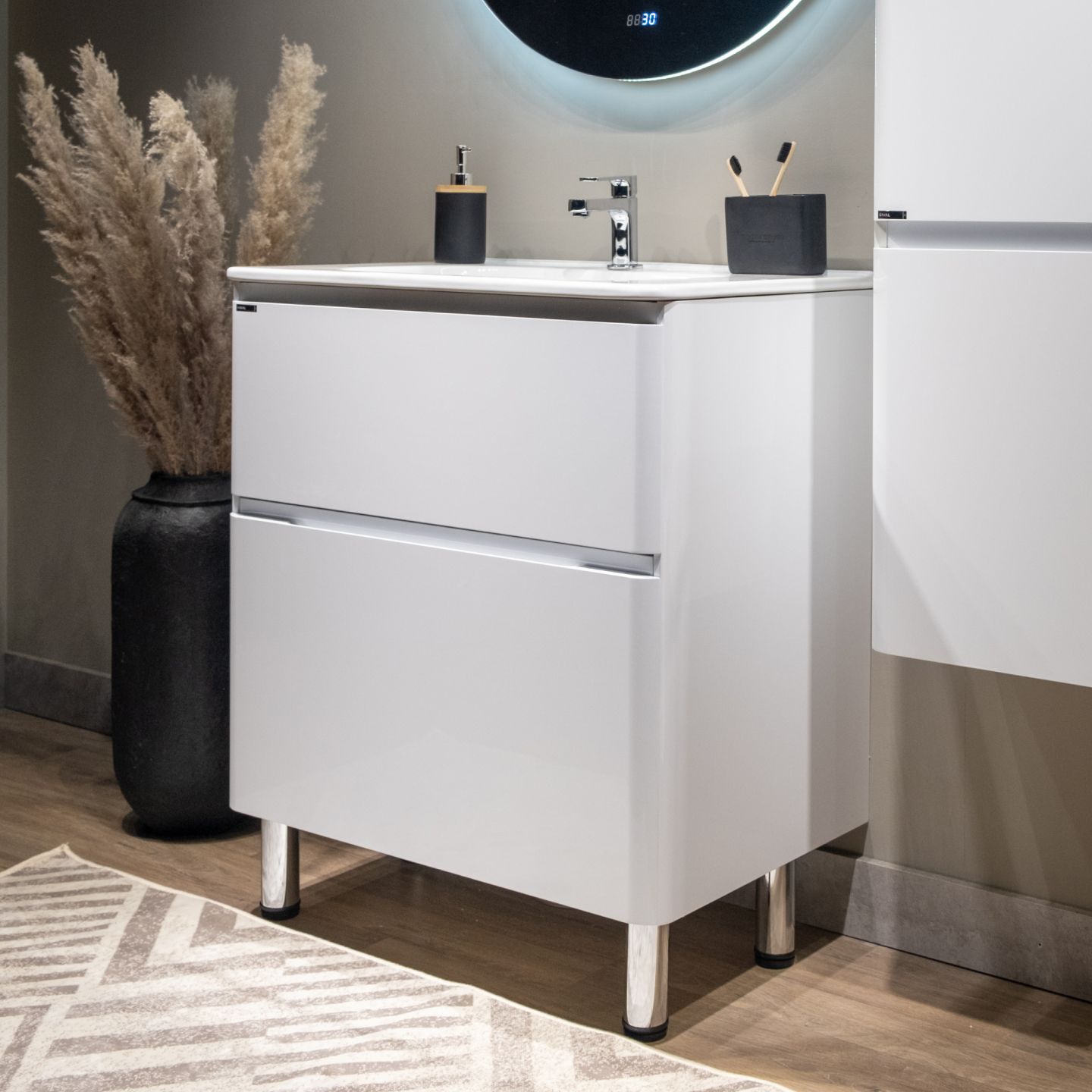 - Варианты крепления: напольное или настенное (ножки в комплекте)