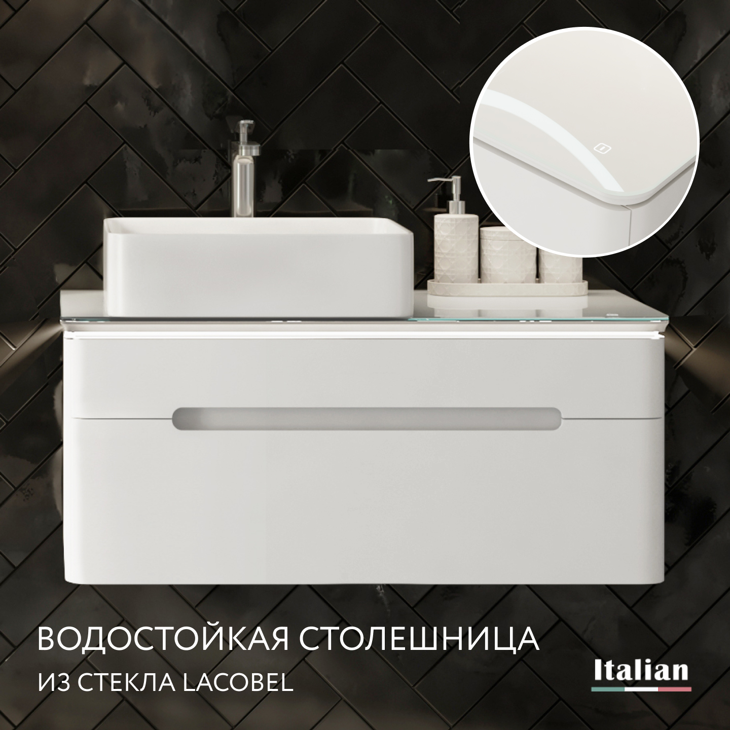 - Подсветка тумбы с сенсорным включателем