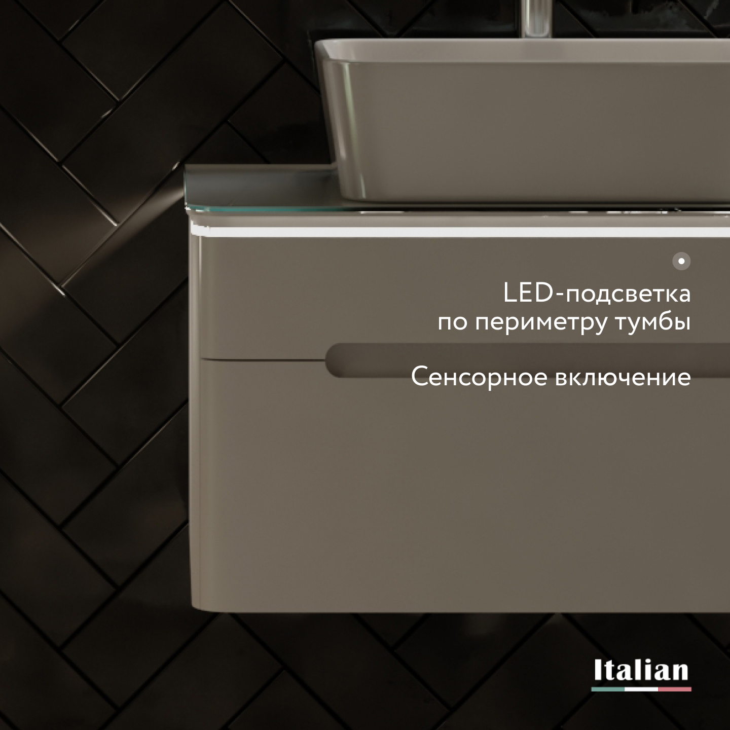- Подсветка тумбы с сенсорным включателем