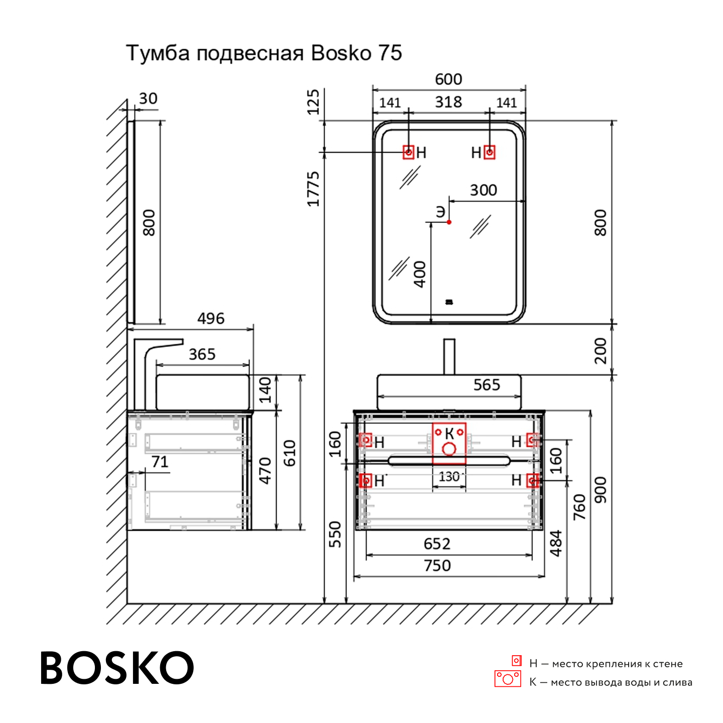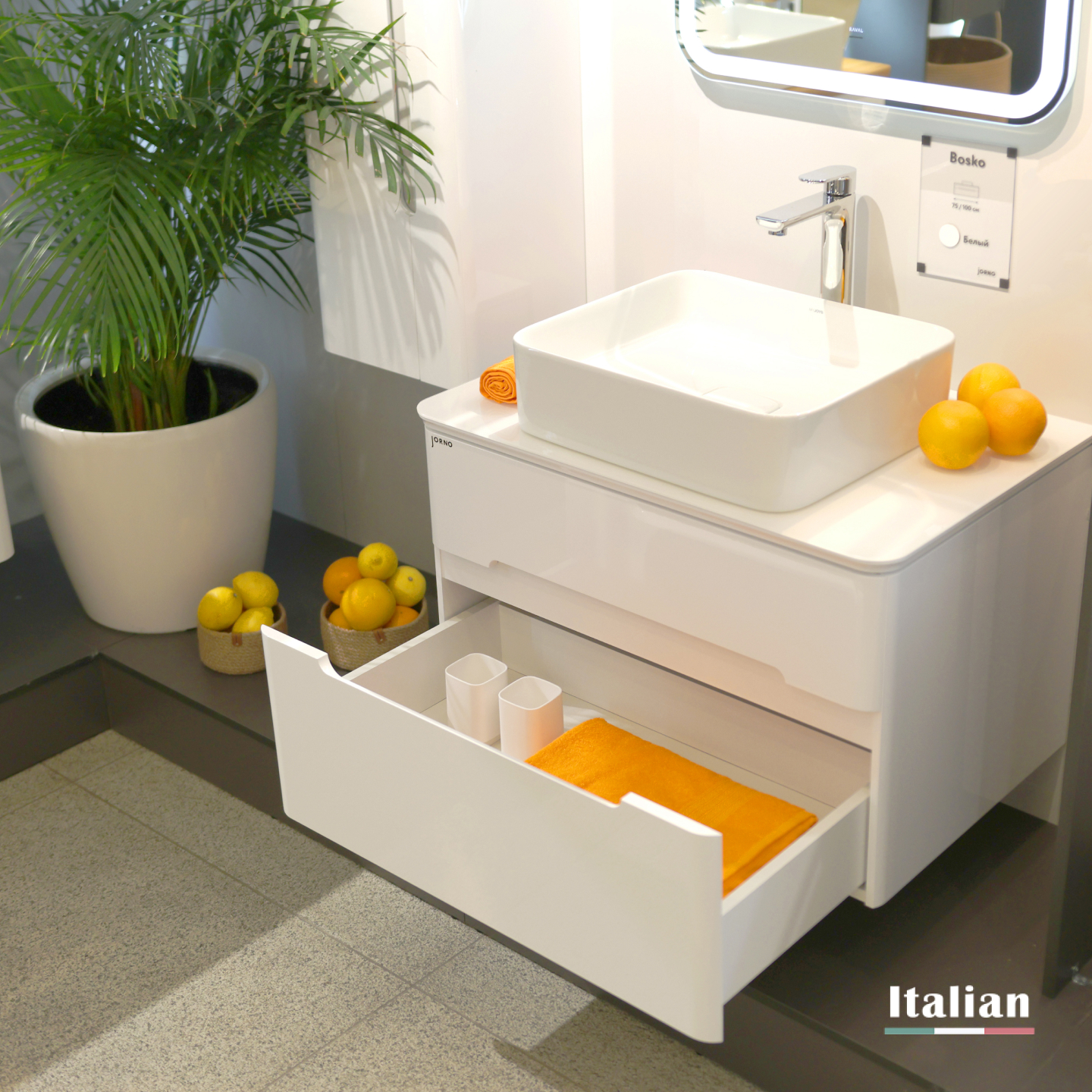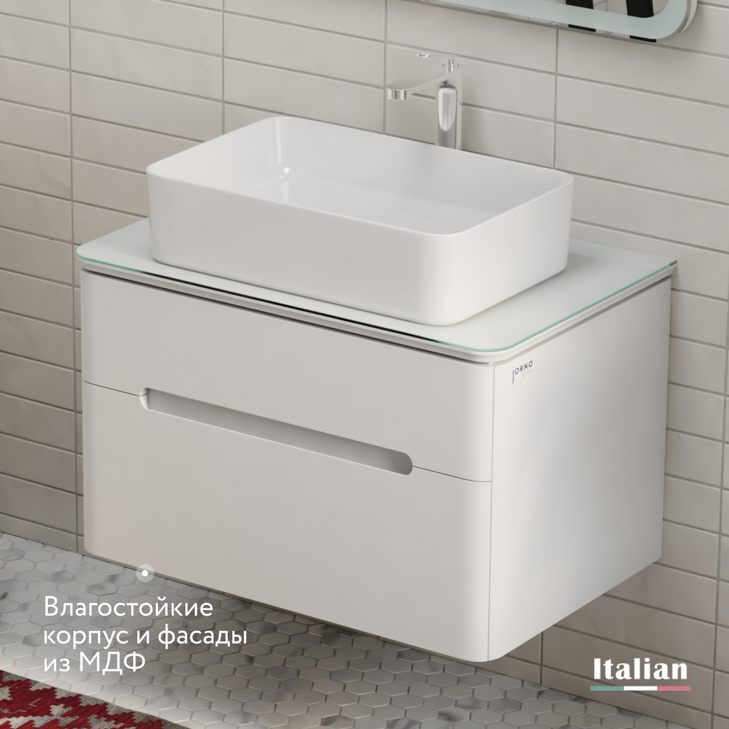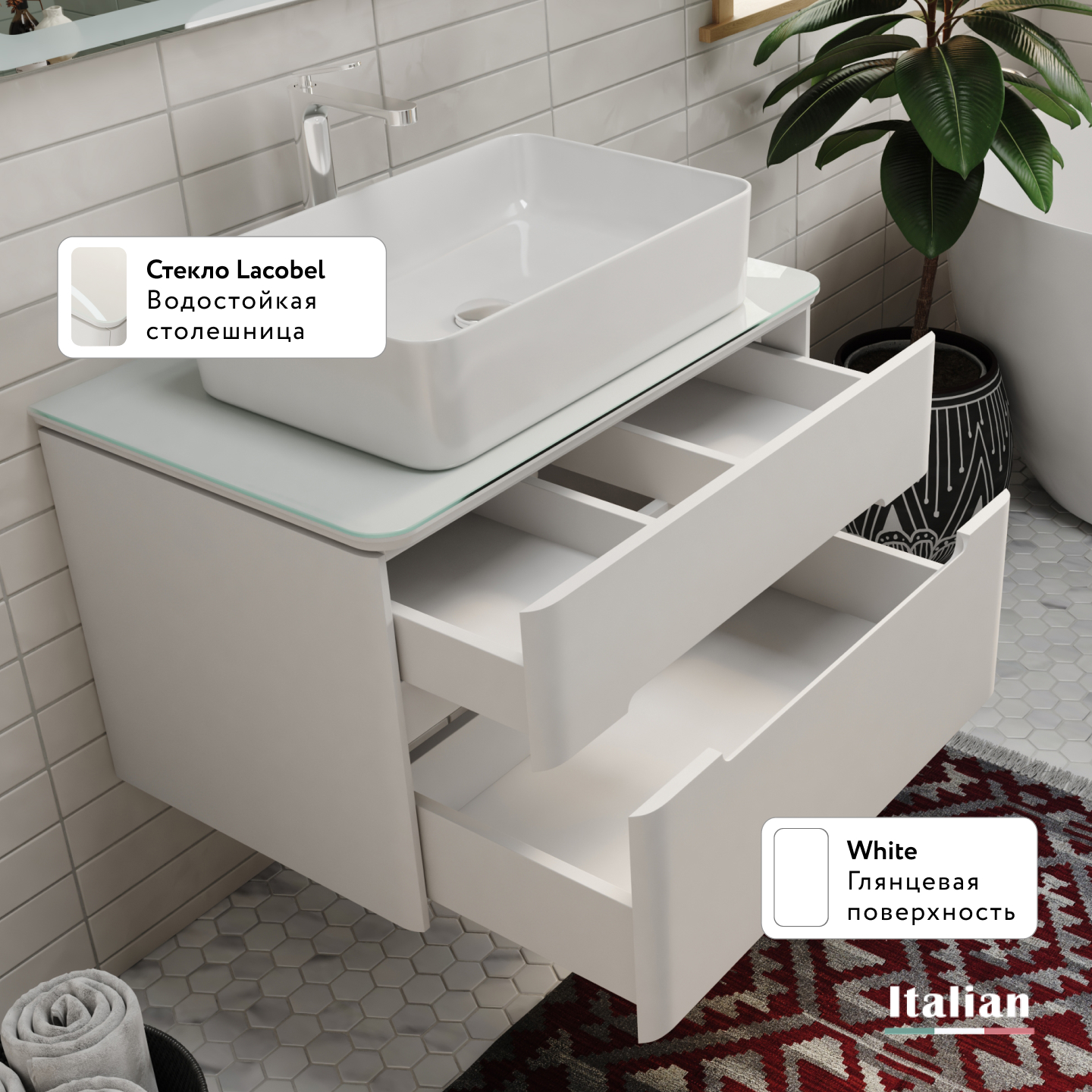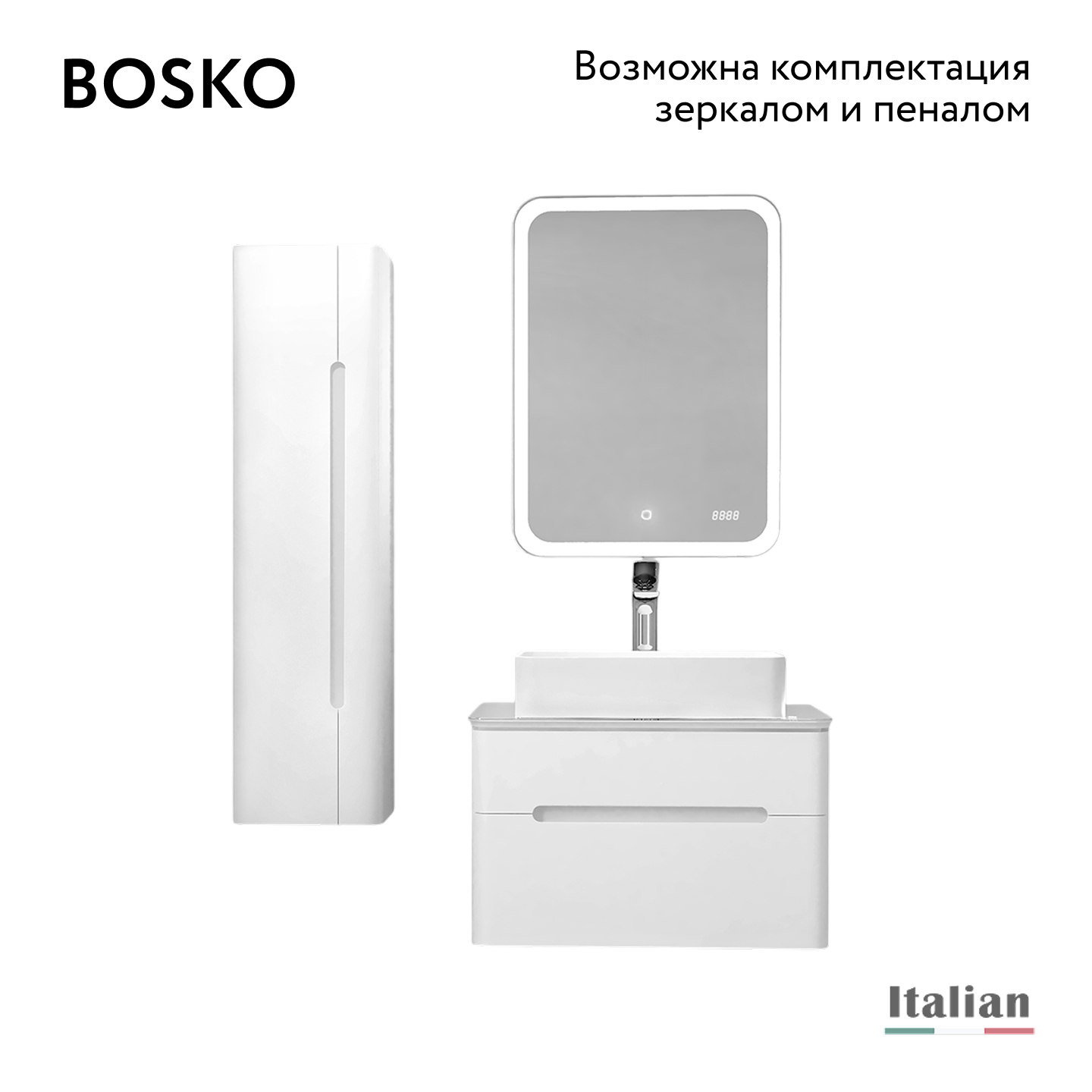 Подвесная тумба Bosko выполнена из МДФ в белой глянцевой пленке ПВХ, а столешница из стекла Lacobel. У тумбы 2 вместительных ящика с удобными интегрированными ручками и механизмом плавного закрывания. Наши опытные менеджеры всегда смогут проконсультировать вас по любым вопросам о нашей мебели и помочь подобрать подходящий именно вам вариант. Наши тумбы надежно упакованы и приходят к вам в собранном виде. Купить нашу мебель можно с помощью оплаты банковской карты. Вы можете добавить к заказу тумбы раковину, зеркало или шкаф-пенал для комплекта мебели. Доставка действует по всей России. Мы создаем решения, которые будут радовать вас каждый день!