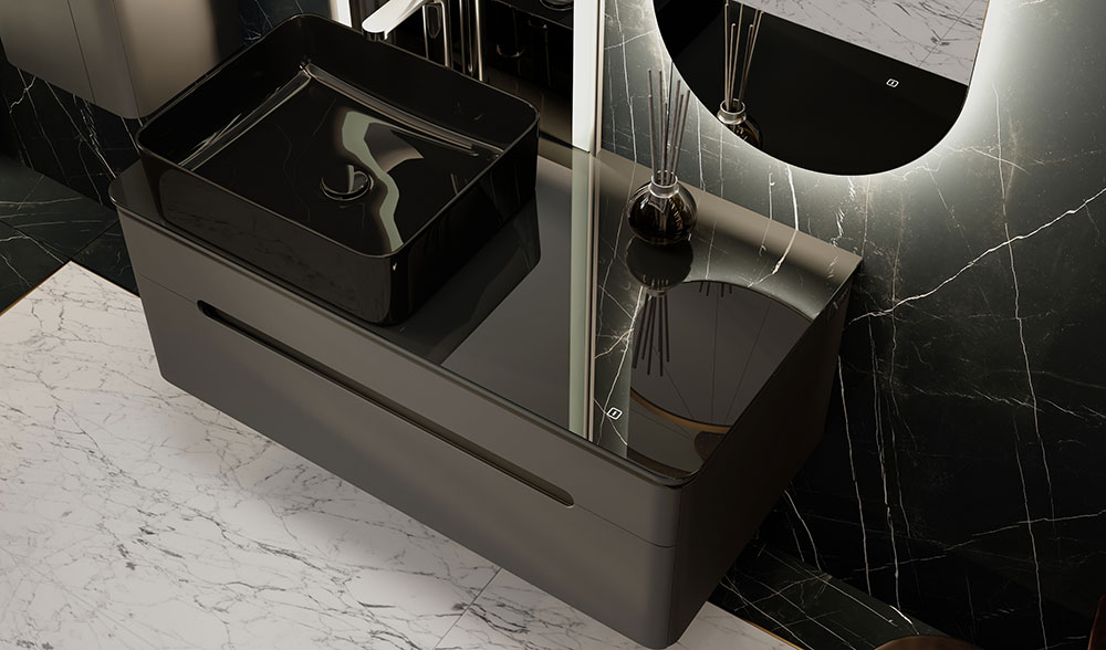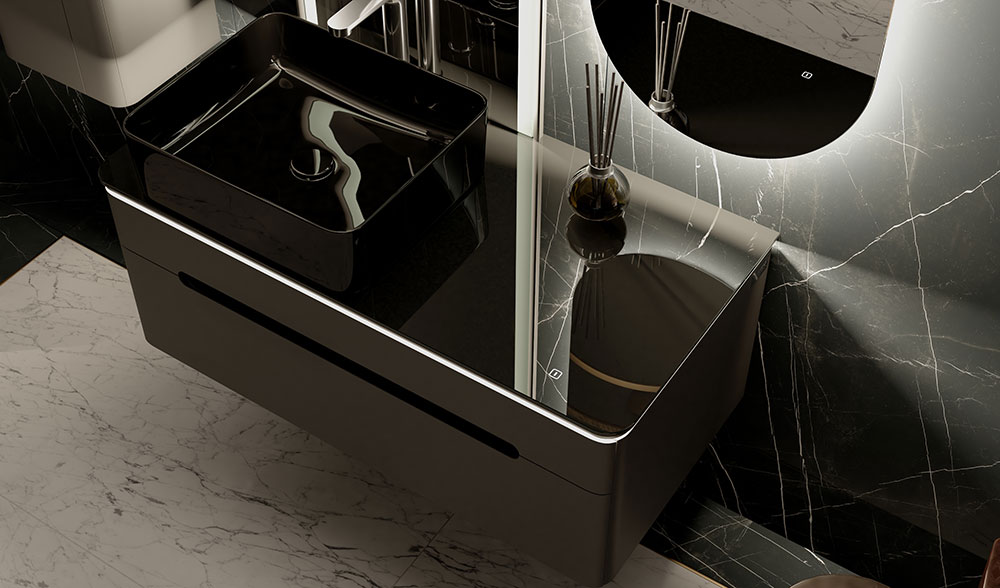 Тумба устойчива к царапинам и перепаду температур. Столешница из стекла Lacobel придает легкость композиции. Бесконтактное включение подсветки. Система плавного закрывания ящиков. Внутренний дополнительный ящик для мелочей. Само название коллекции говорит о том, что одним из основных достоинств данного комплекта является подсветка. Свет столешницы тумбы можно регулировать от деликатного мягкого до более яркого.|