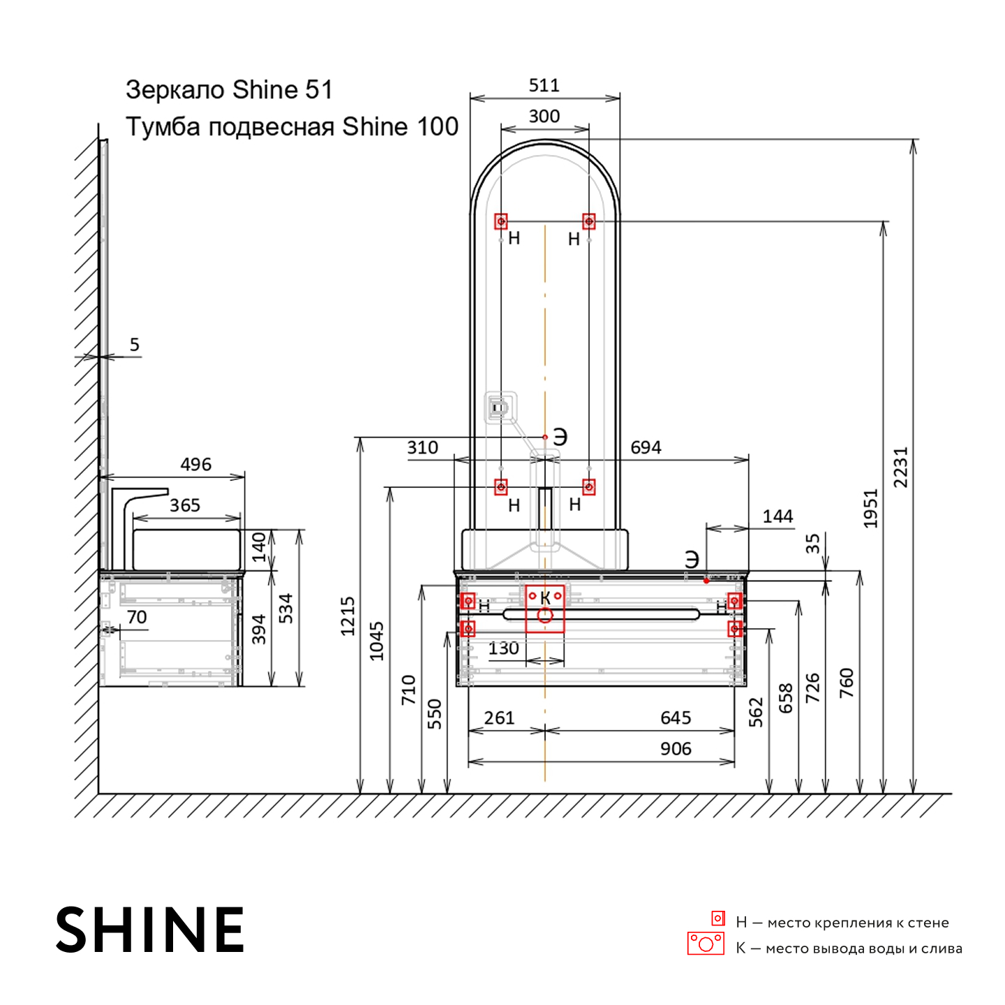 - Подсветка тумбы с сенсорным включателем
