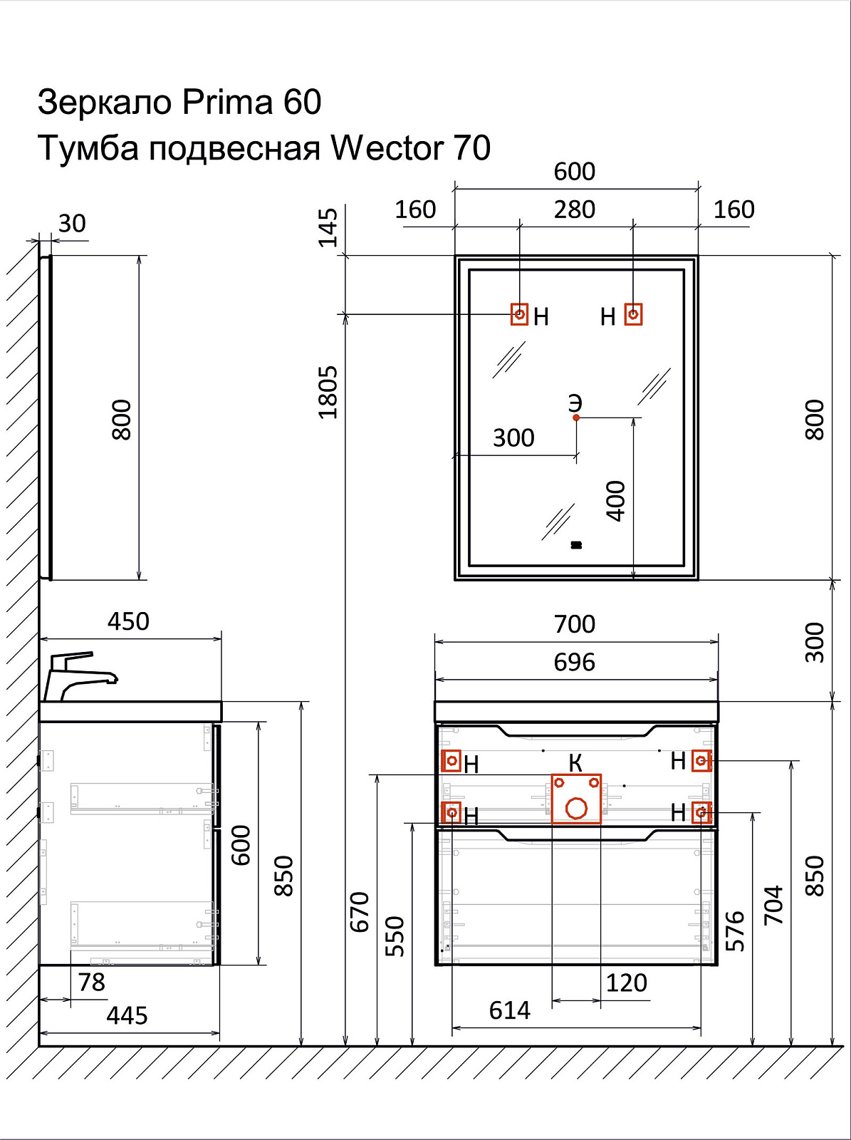 Раковина для тумбы Wector 70 приобретается отдельно