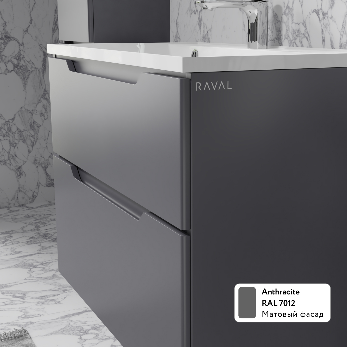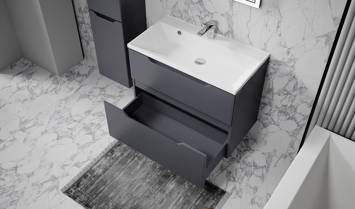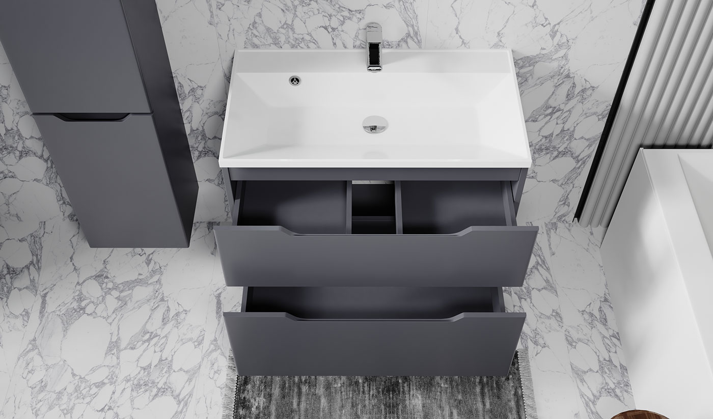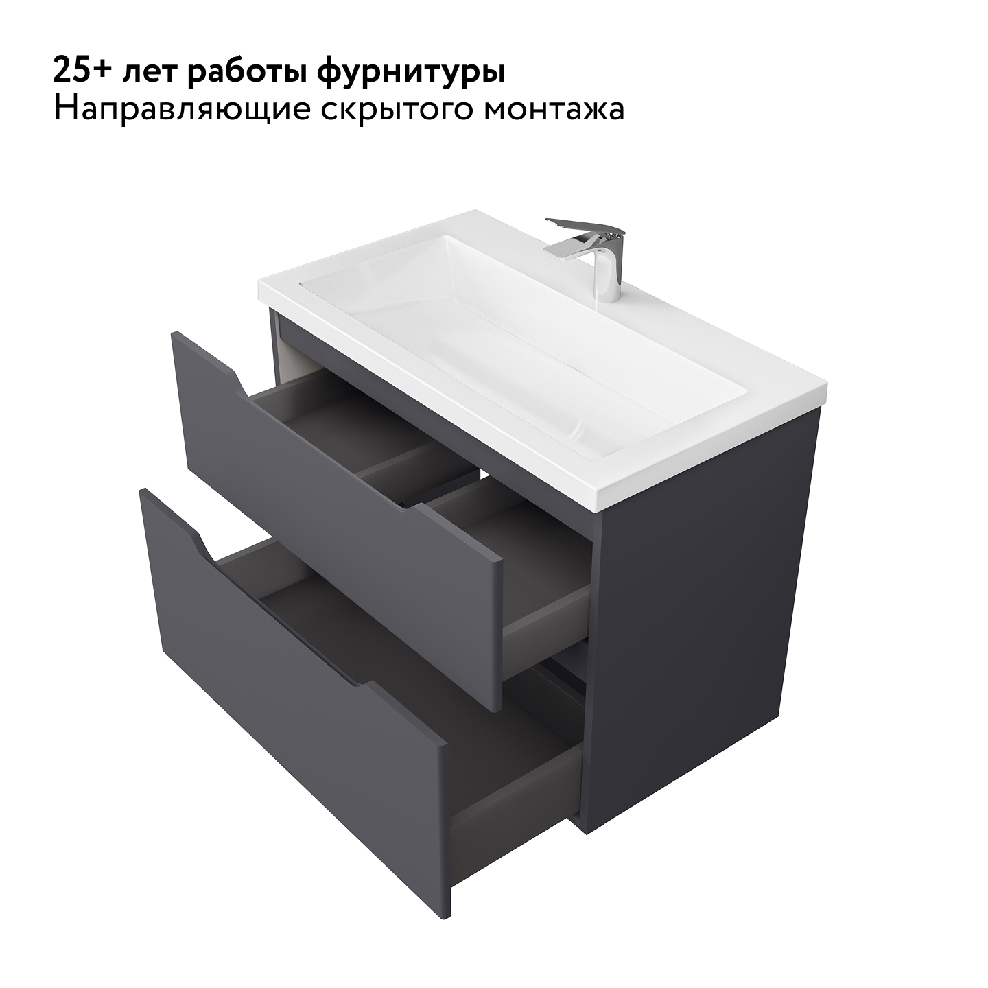 Тумба оснащена 2 ящиками с доводчиками и интегрированными ручками