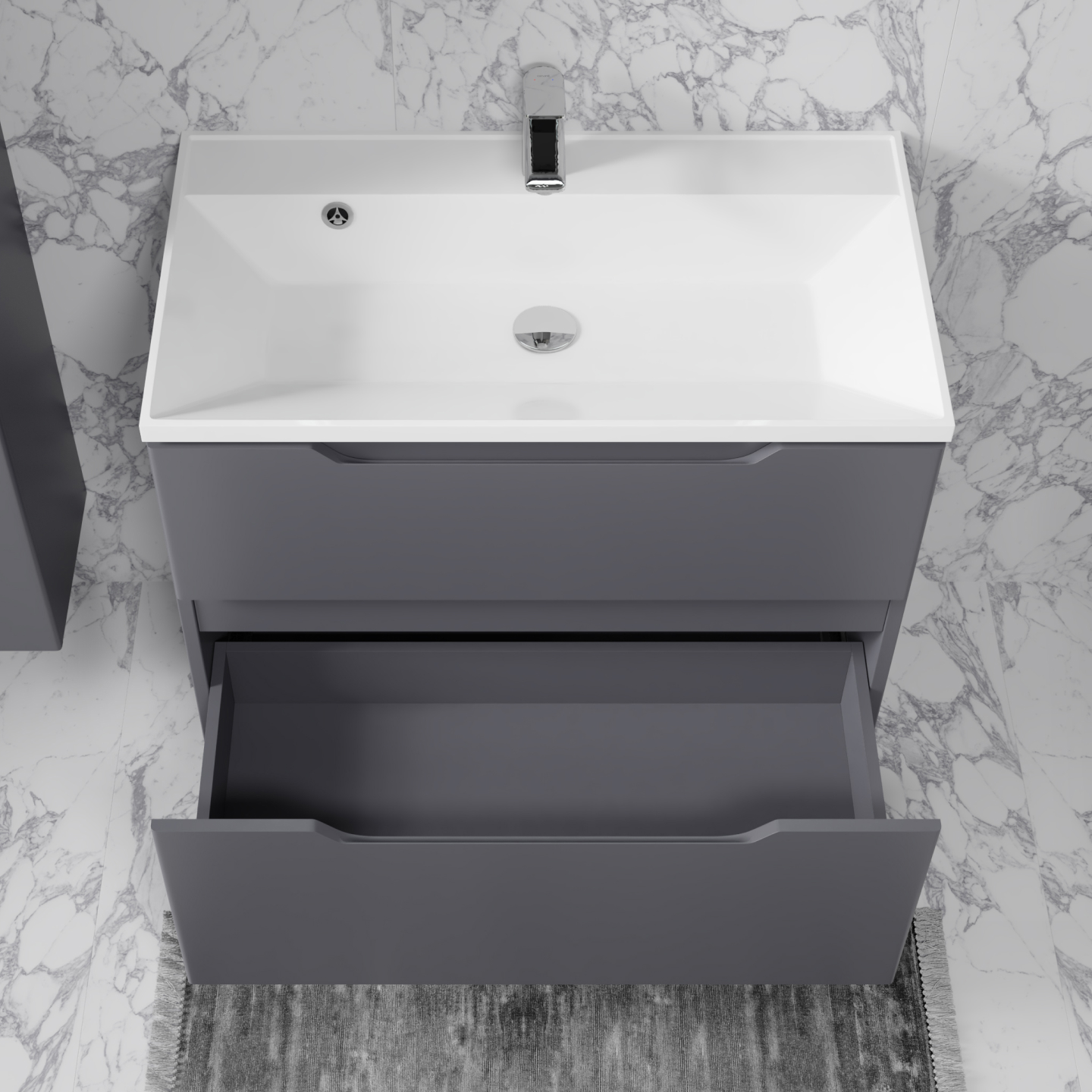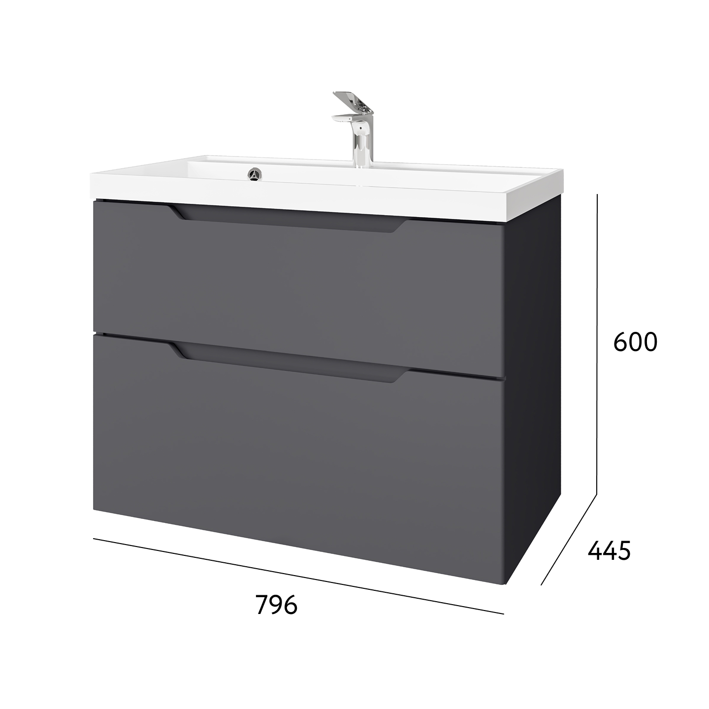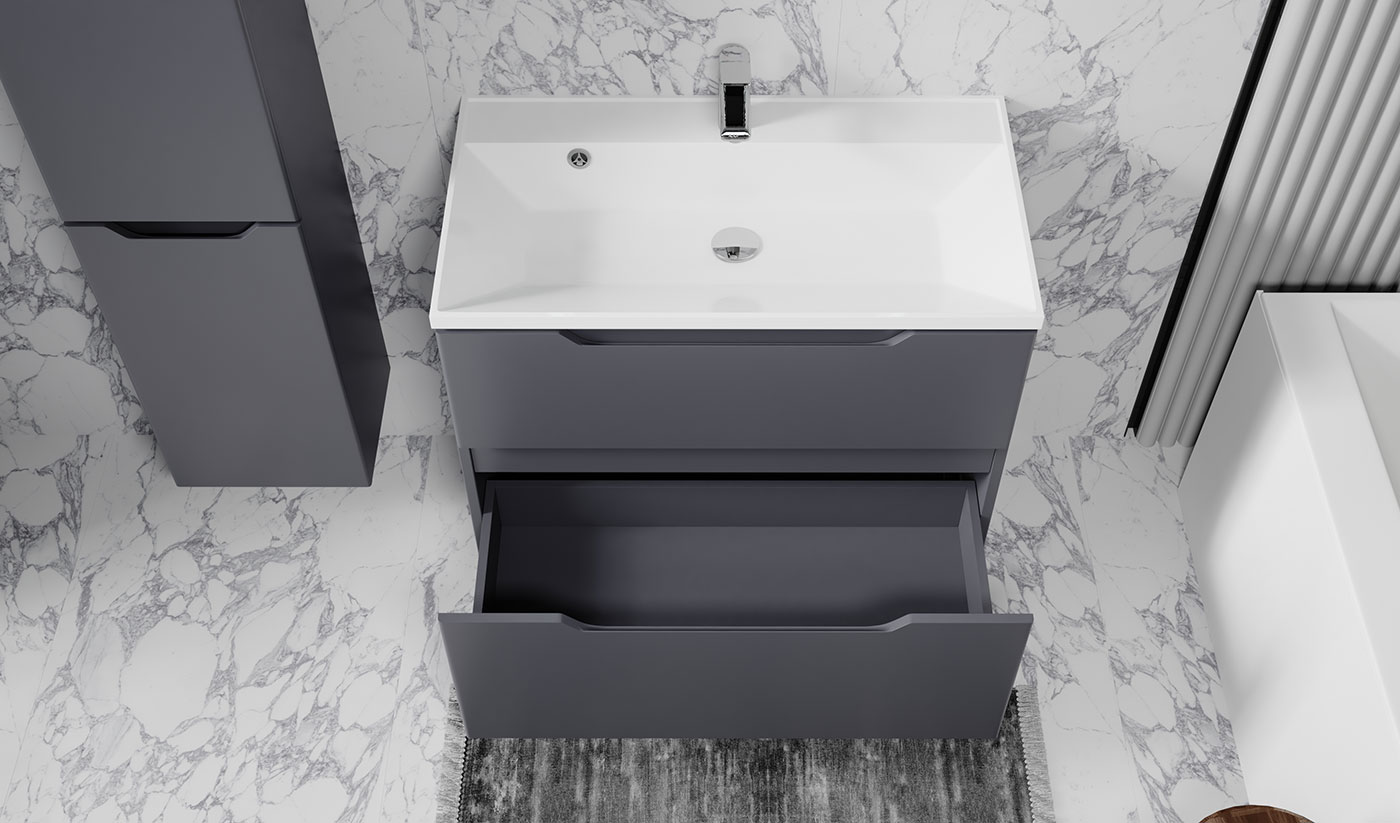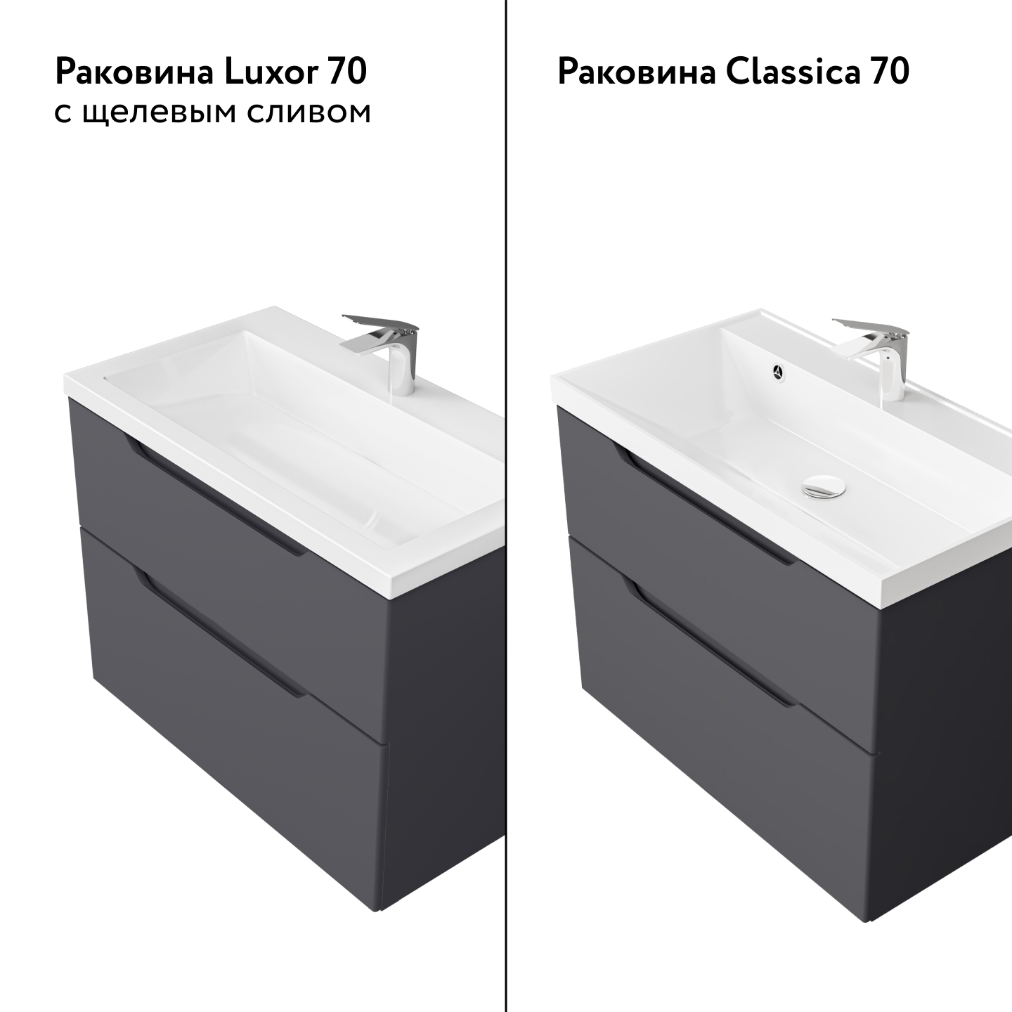 Тумба оснащена 2 ящиками с доводчиками и интегрированными ручками