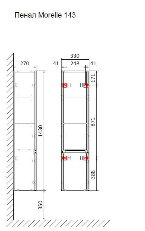 Корпус и фасады выполнены из МДФ в пленке ПВХ и обладают повышенной устойчивостью к влаге.