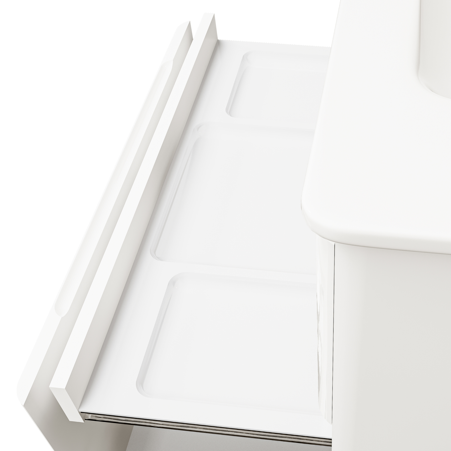 Главной особенностью тумбы является наличие двух встроенных органайзеров. Различие формы и глубины ячеек позволяет удобно разместить все мелкие предметы.
