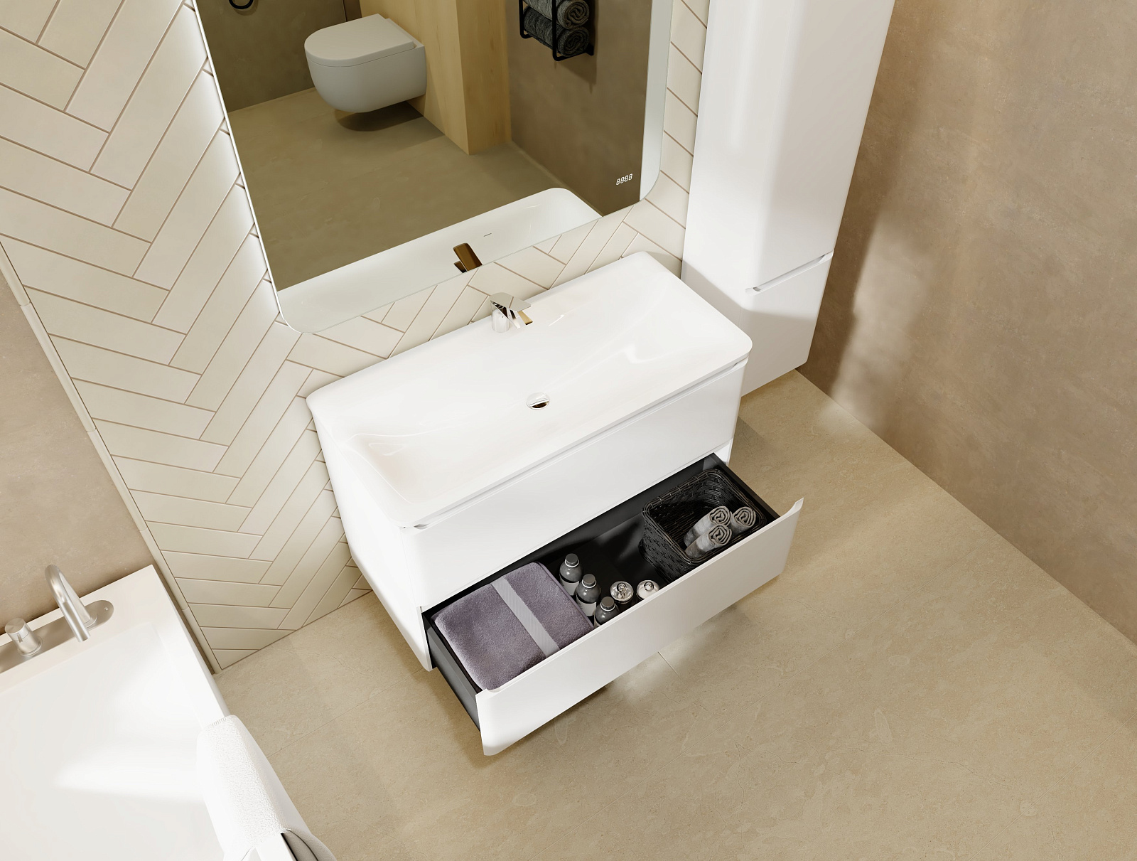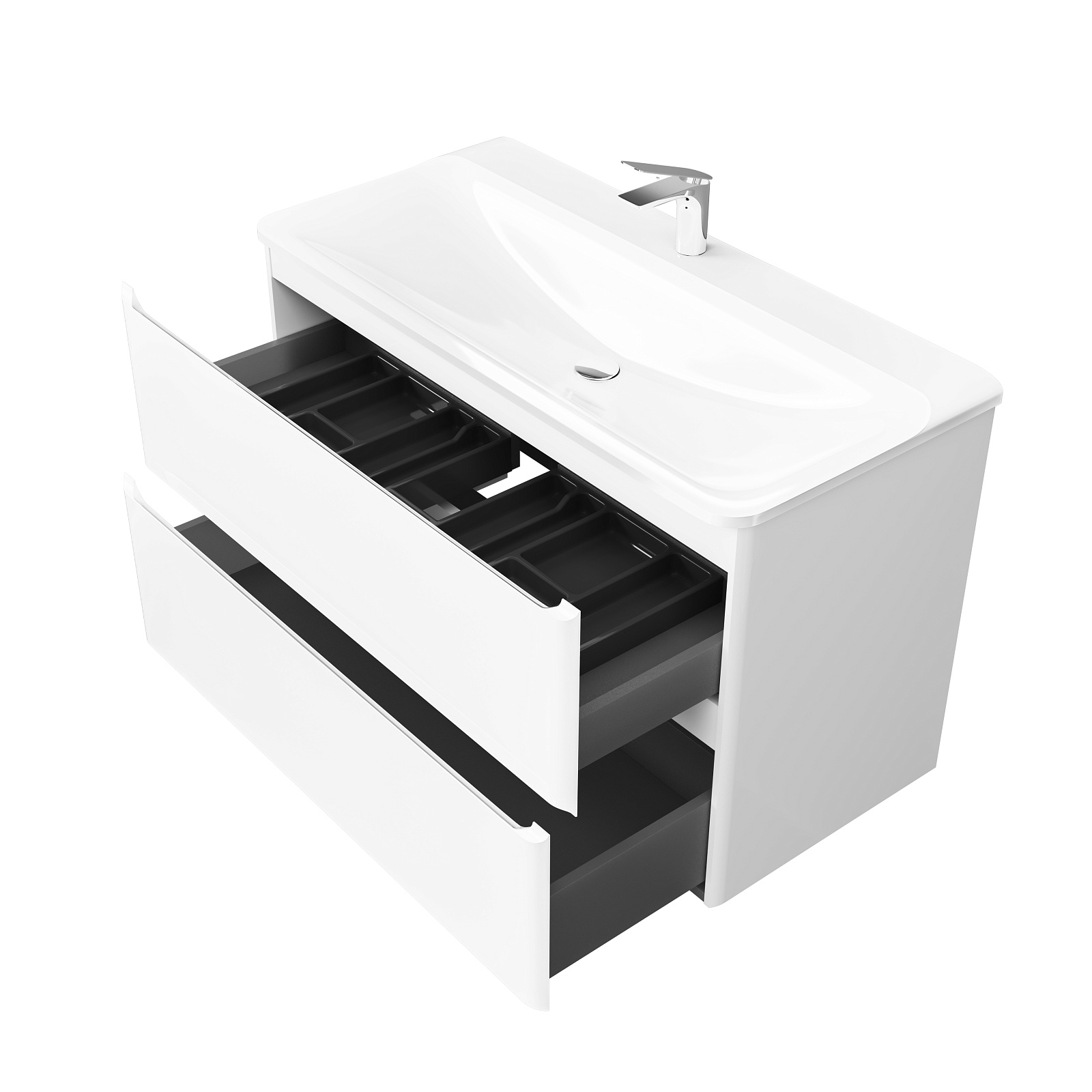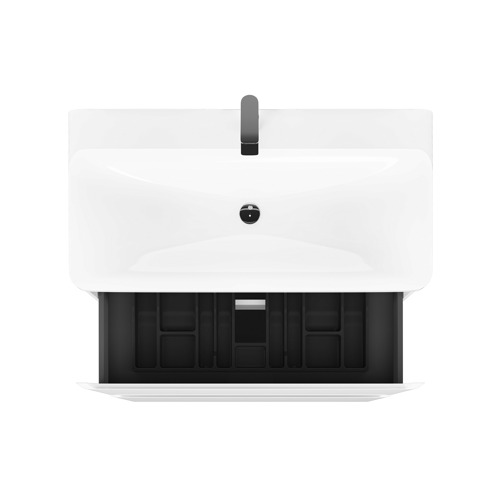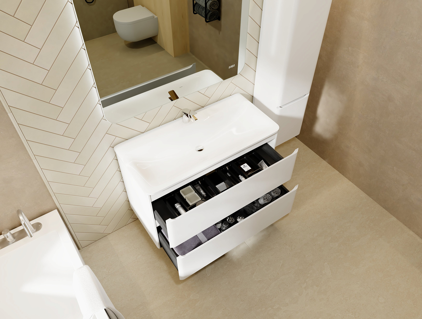 Коллекция Welto с 2 ящиками разработана в сдержанном, современном стиле. Встроенный органайзер помогает удобно разместить все мелкие предметы и поддерживать порядок в ванной комнате. Плавное скругление углов и интегрированные ручки делают комплект мебели максимально безопасным. Полноразмерная вкладная раковина авторского дизайна с пологими бортами проста в уходе. Корпуса и фасады пенала и тумбы изготовлены из МДФ и покрыты глянцевой пленкой ПВХ.