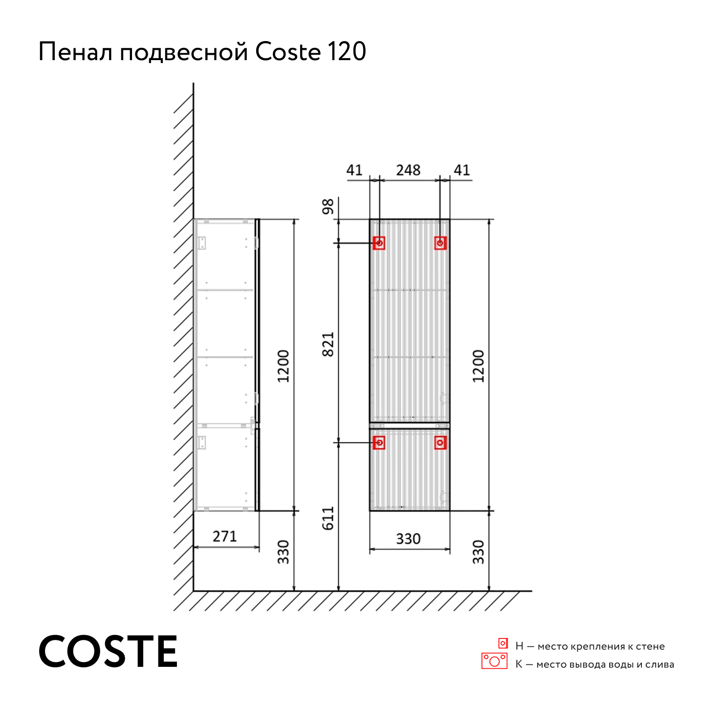 Пенал Костэ 120 подвесной Светло-коричневый |