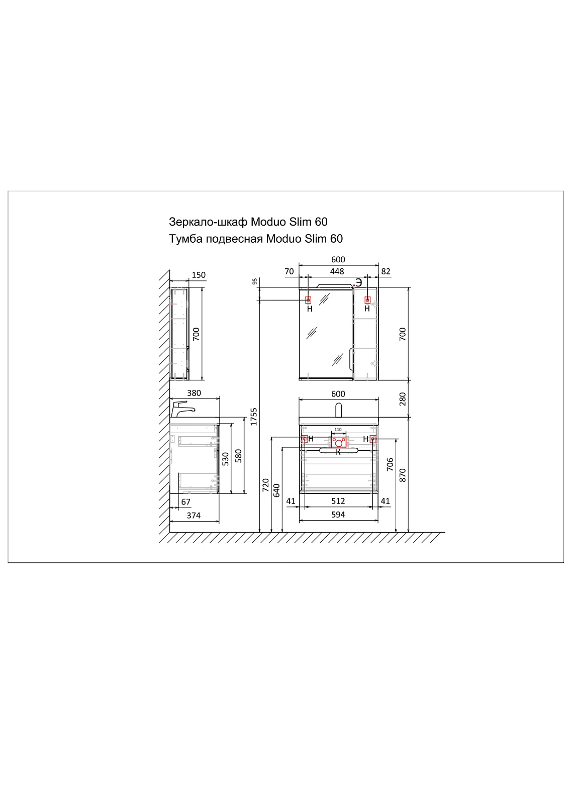 Пенал Модуо слим, подвесной |