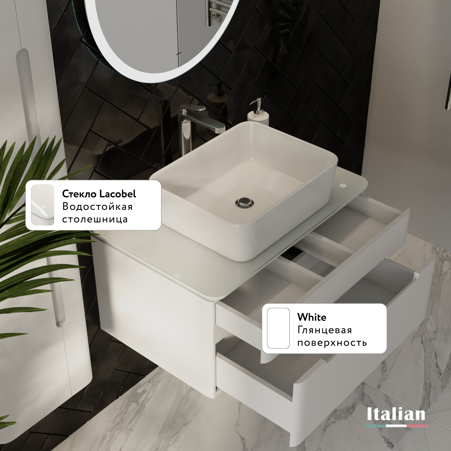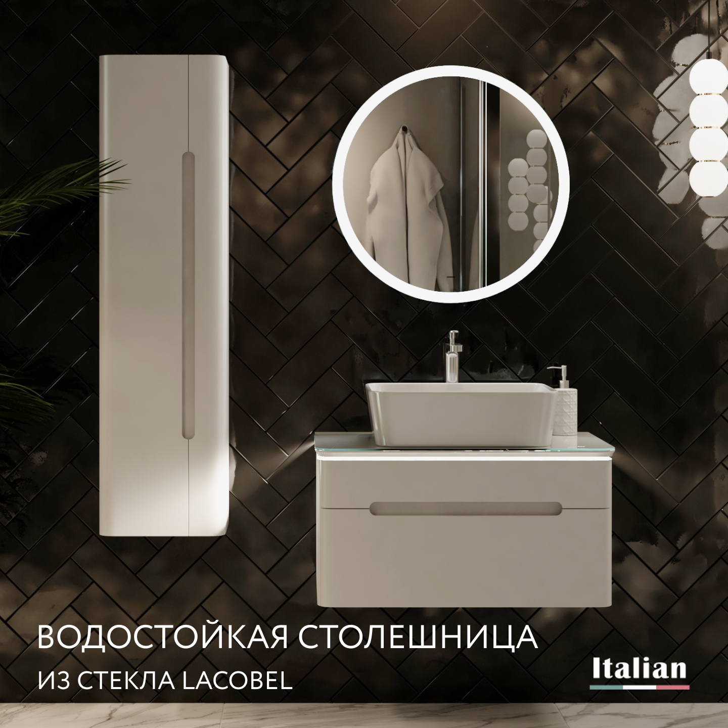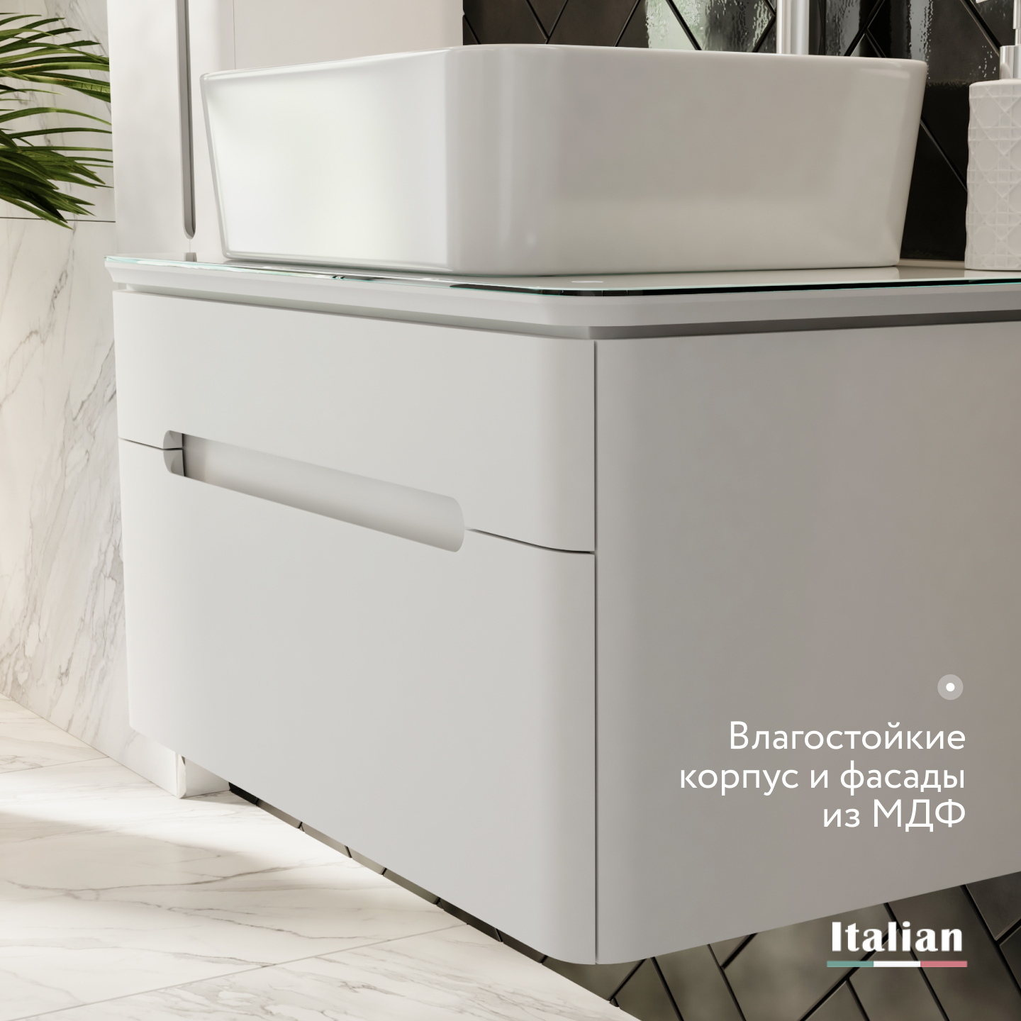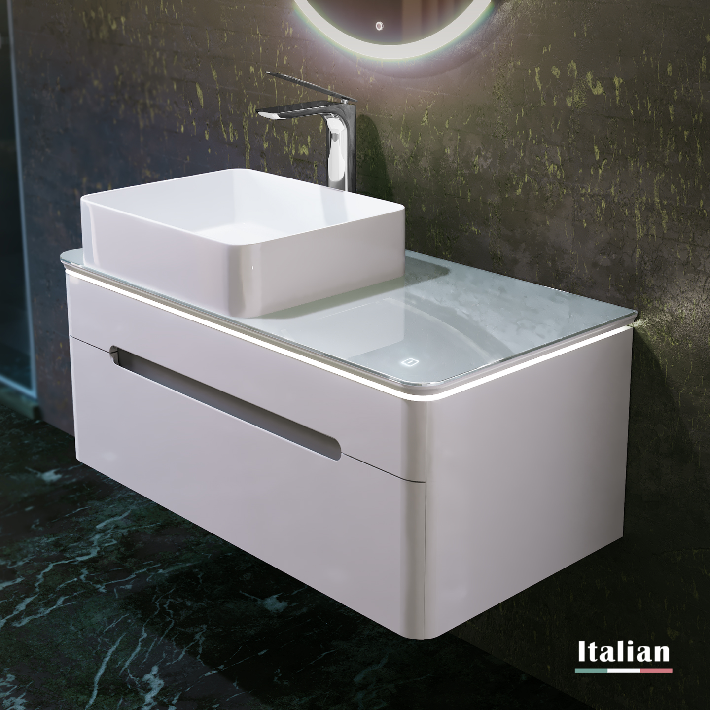 Само название коллекции говорит о том, что одним из основных достоинств данного комплекта является подсветка. Свет столешницы тумбы можно регулировать от деликатного мягкого до более яркого.