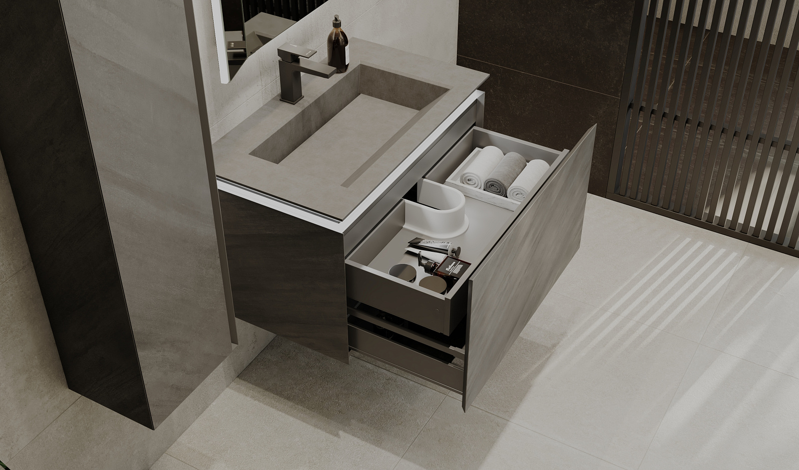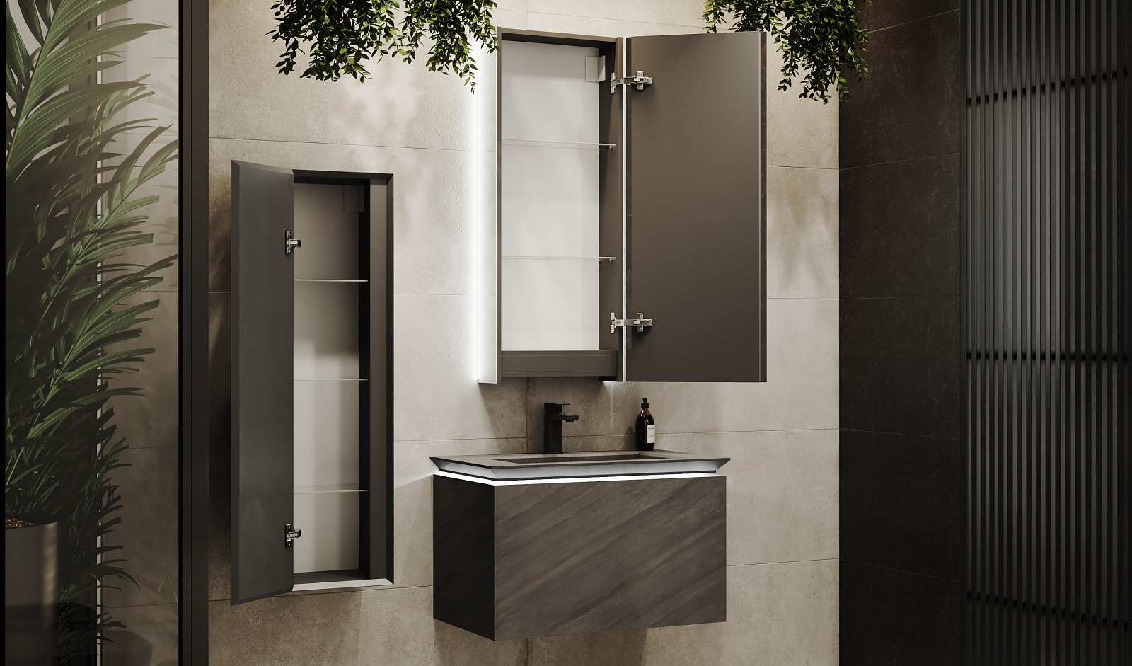 Пенал Инклайн 120 подвесной, бетон |