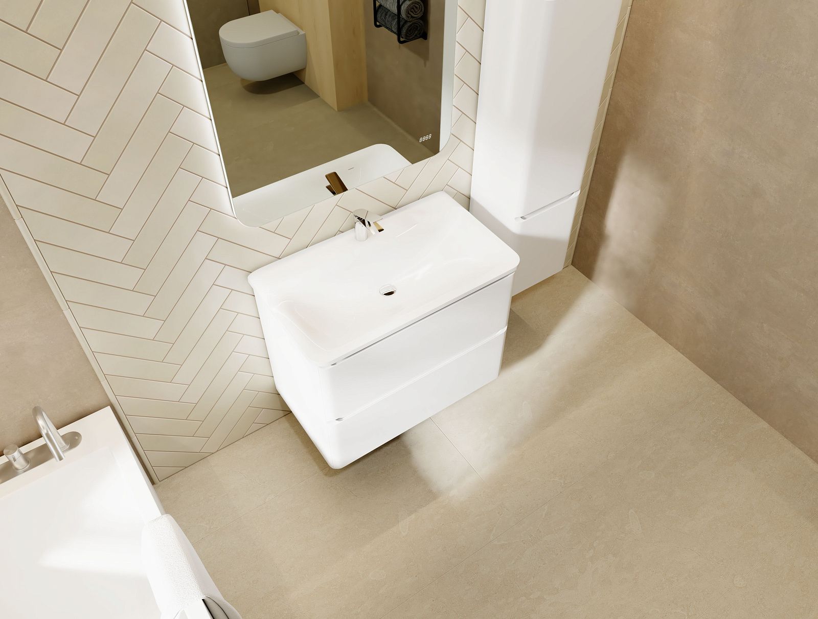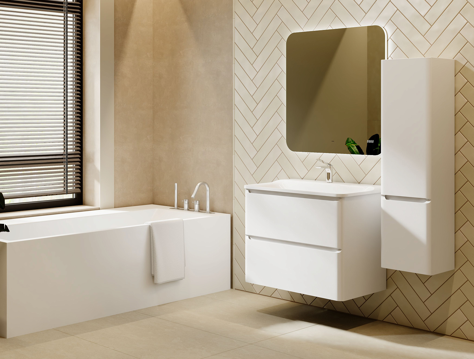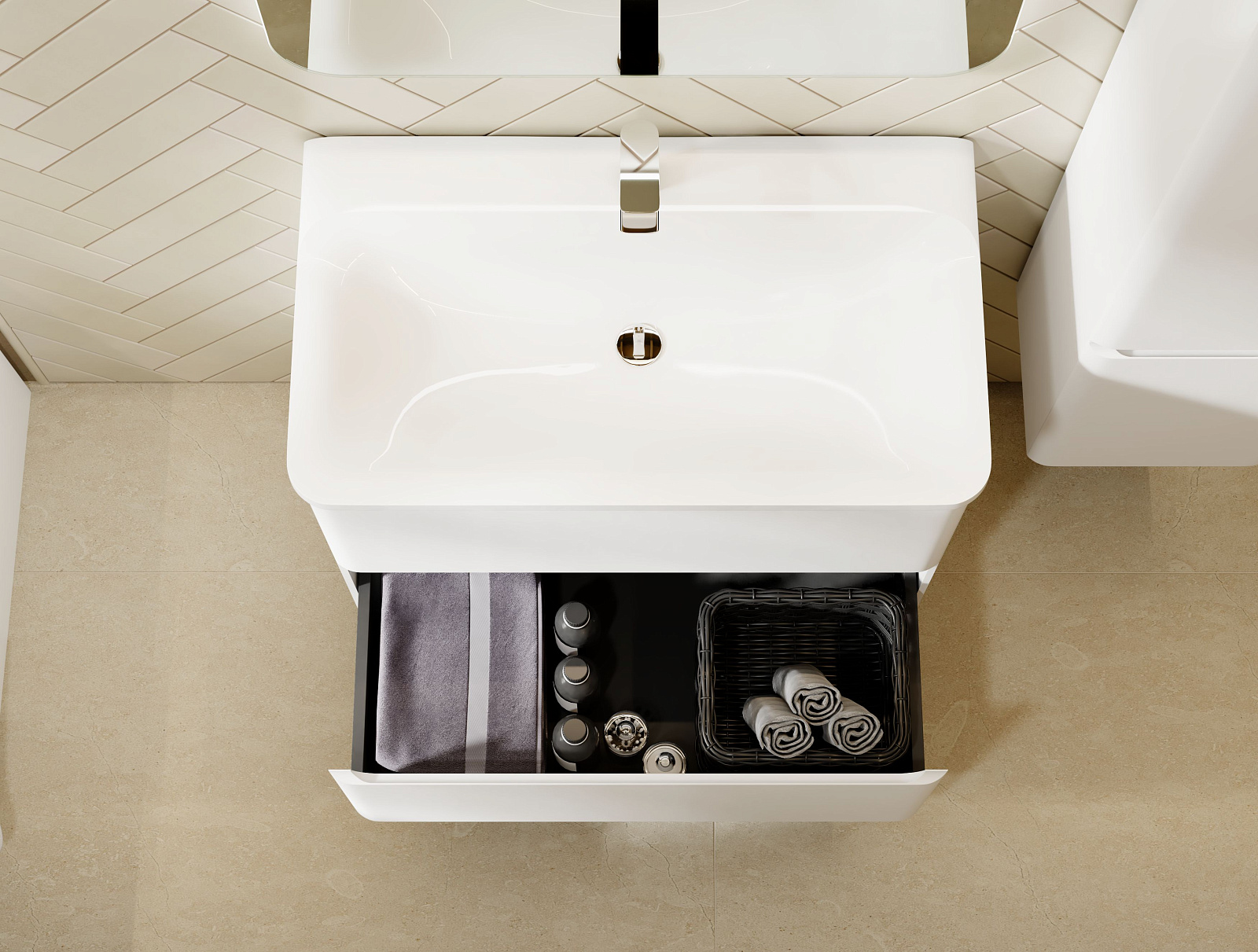 Коллекция Welto разработана в сдержанном, современном стиле. Компактный выдвижной ящик освобождает пространство под тумбой для дополнительного использования. Встроенный органайзер помогает удобно разместить все мелкие предметы и поддерживать порядок в ванной комнате. Плавное скругление углов и интегрированные ручки делают комплект мебели максимально безопасным. Полноразмерная вкладная раковина авторского дизайна с пологими бортами проста в уходе. Корпуса и фасады пенала и тумбы изготовлены из МДФ и покрыты глянцевой пленкой ПВХ.