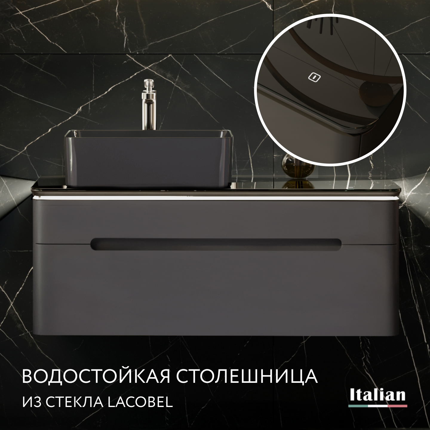 - Подсветка тумбы с сенсорным включателем