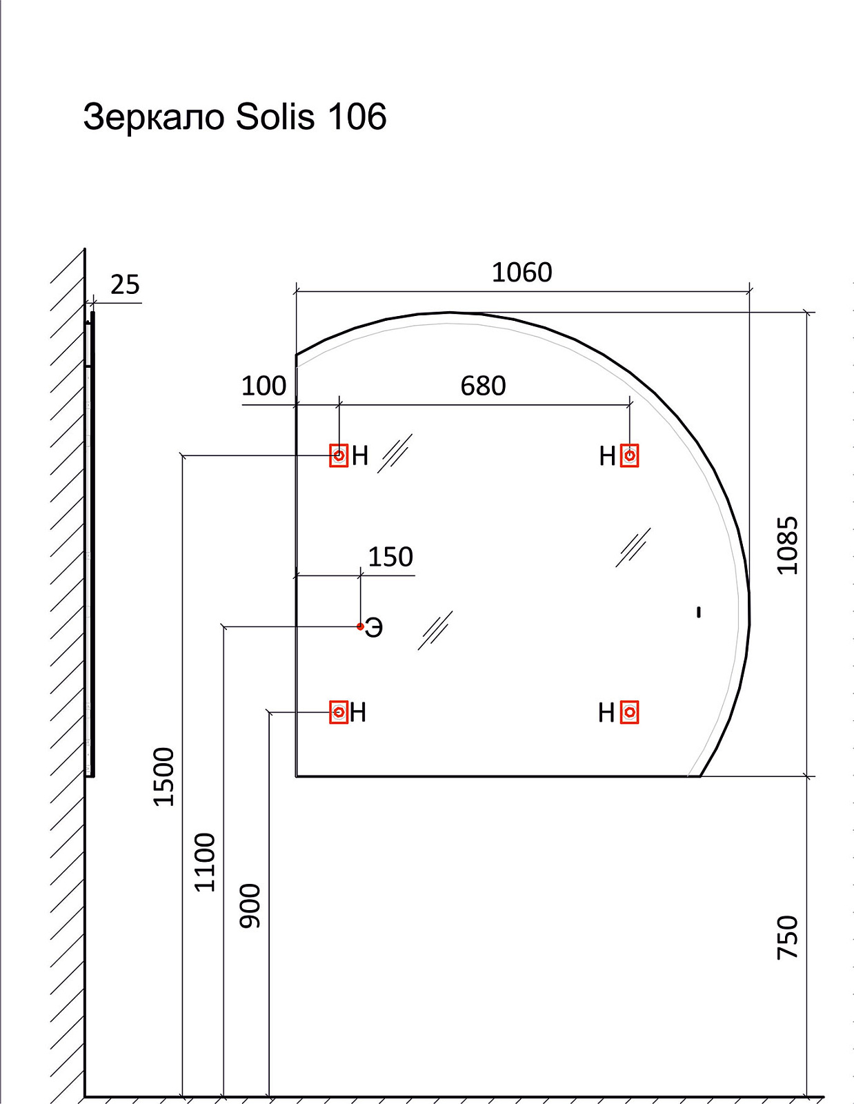 Зеркало-пенал Солис new 34 (маленький полукруг) |